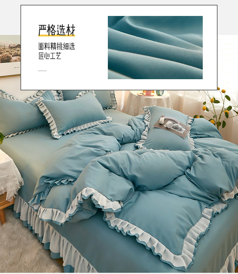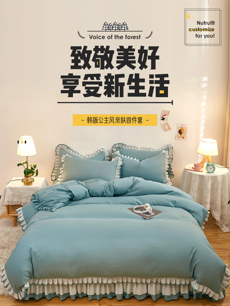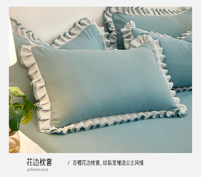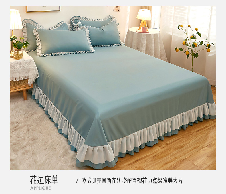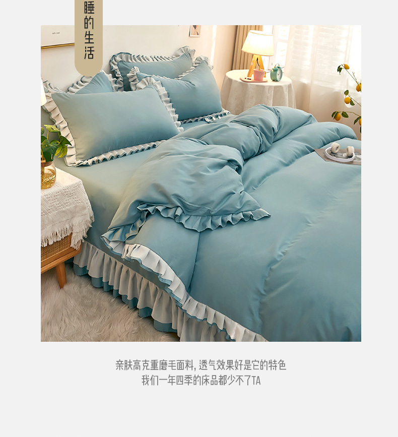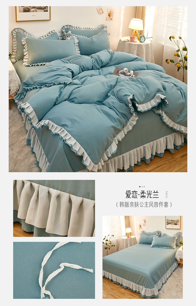 商品名称:沐珩家纺 2026新款韩版公主风亲肤磨毛床单四件套-爱恋系列 爱恋-柔光兰