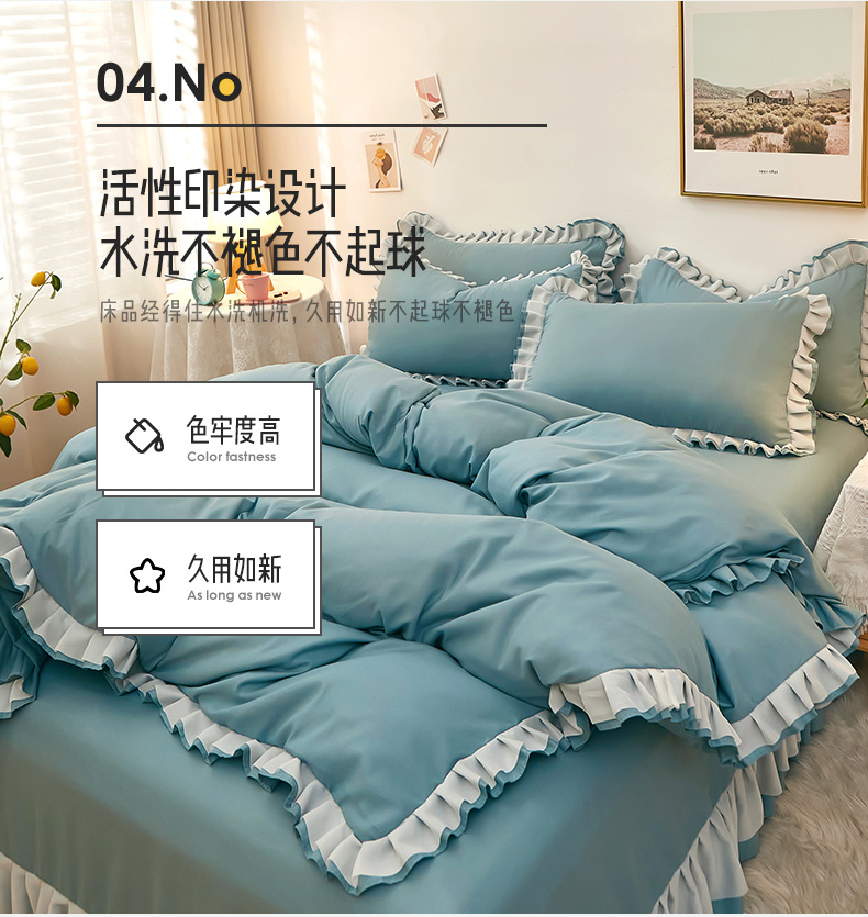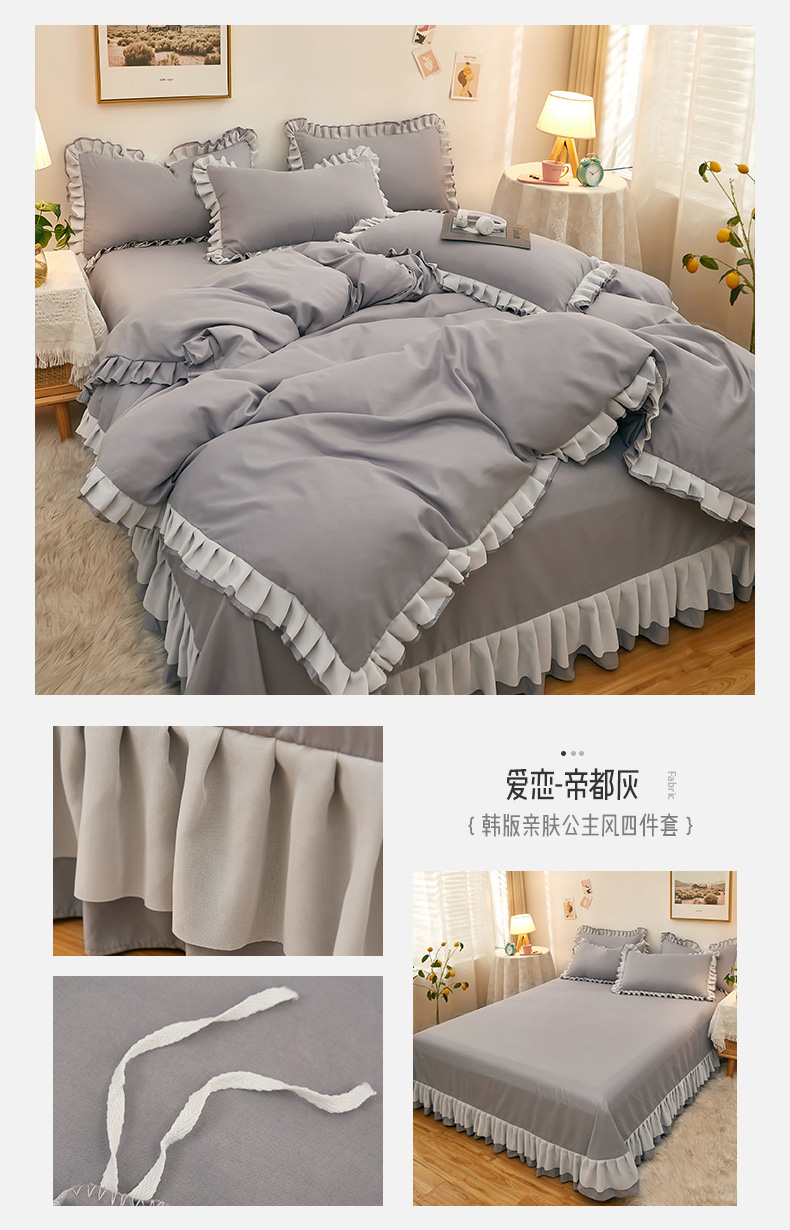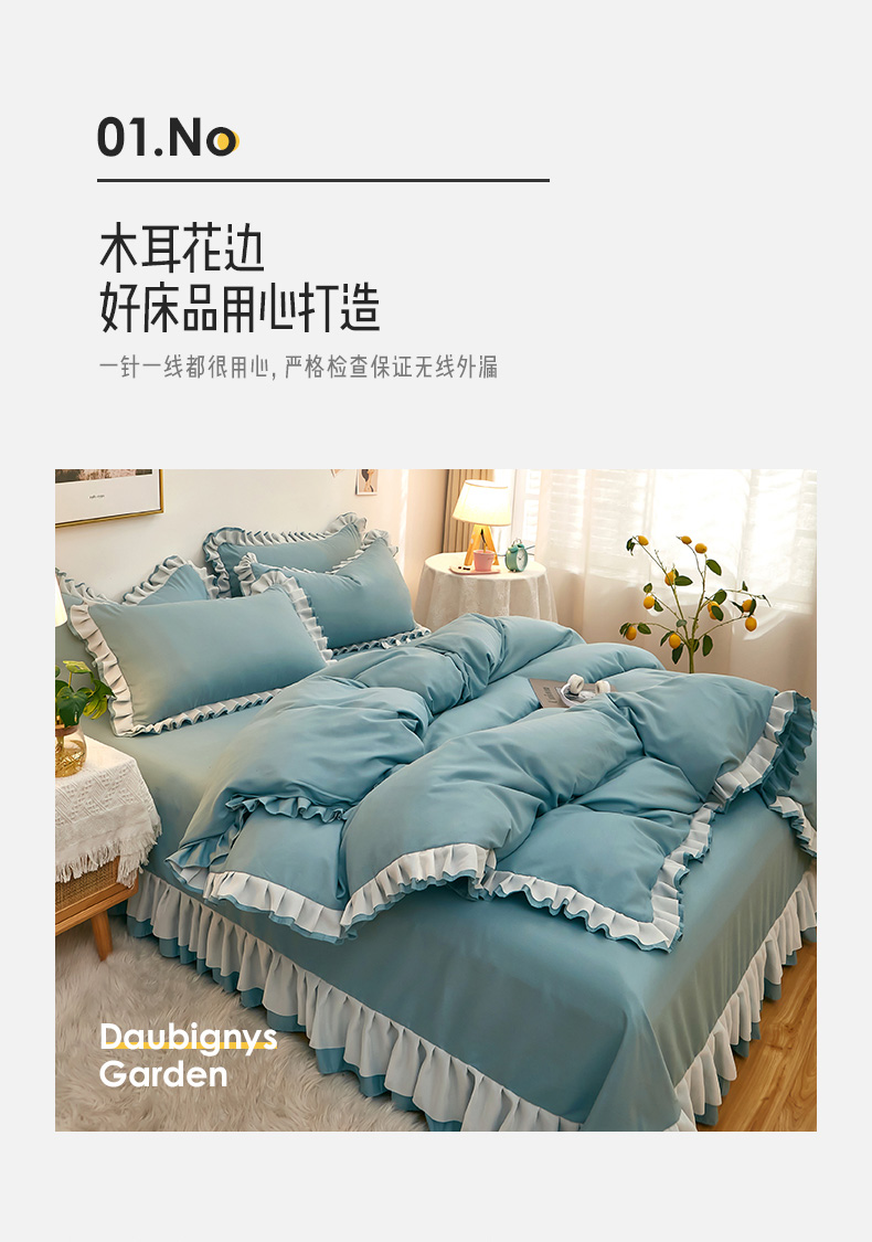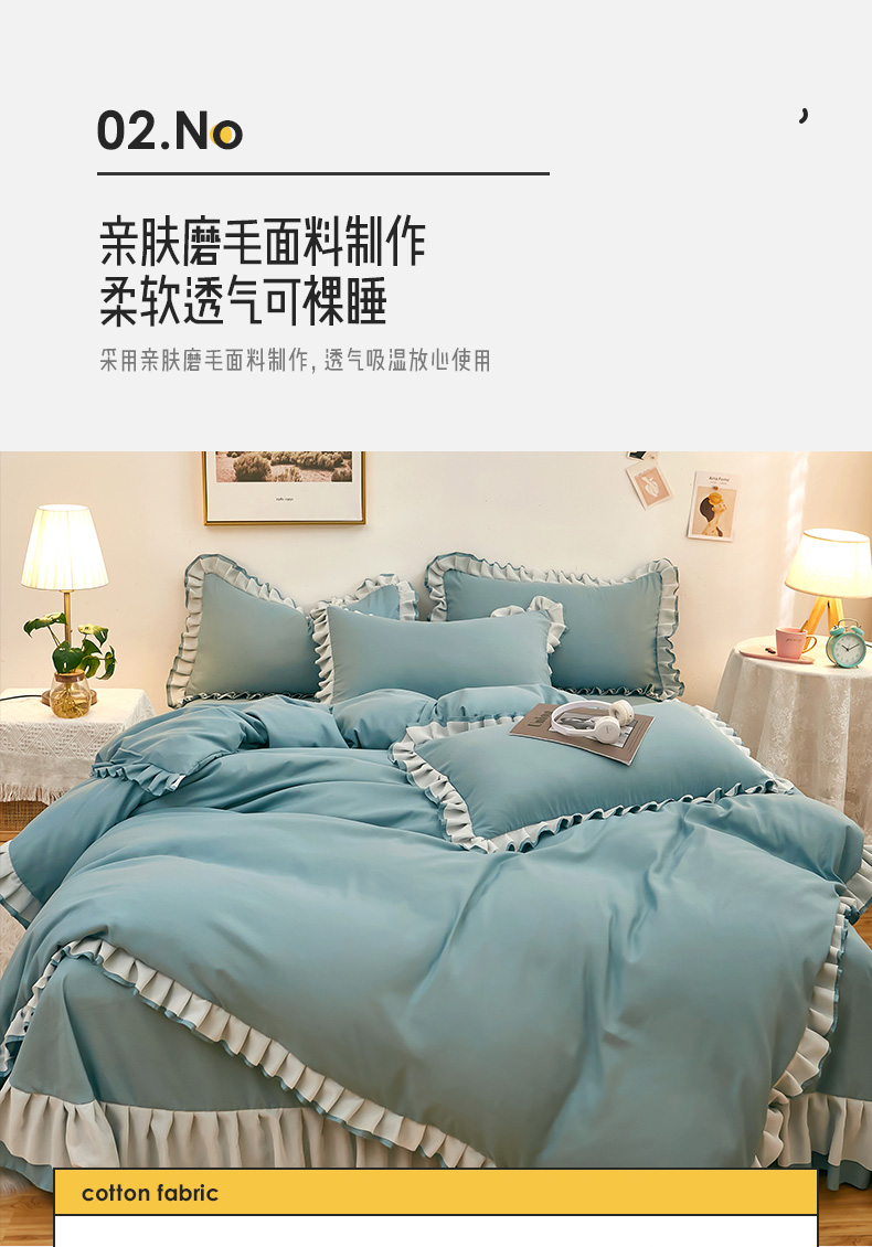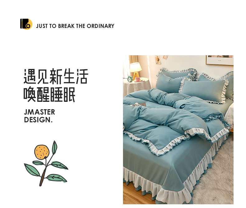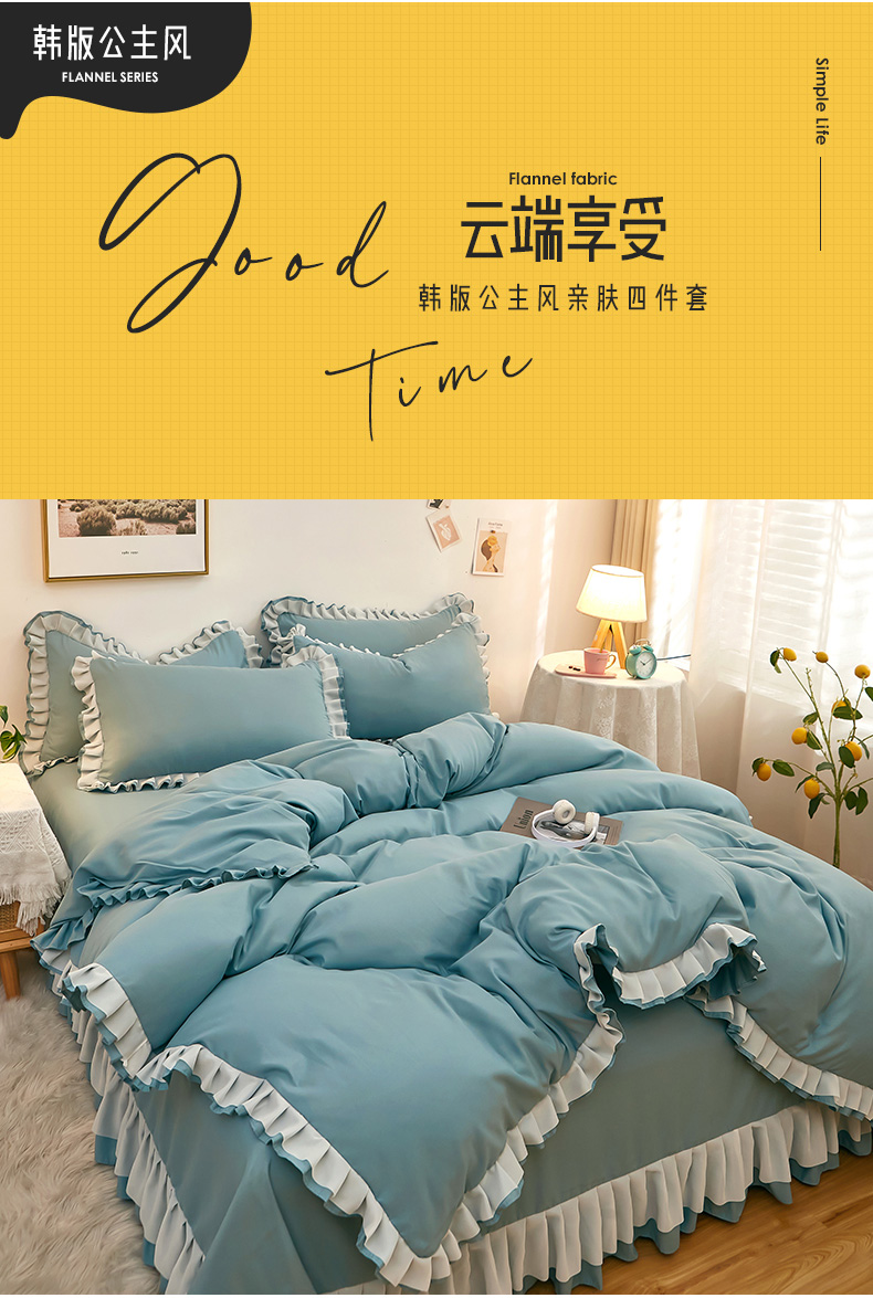 商品名称:沐珩家纺 2026新款韩版公主风亲肤磨毛床单四件套-爱恋系列 爱恋-柔光兰