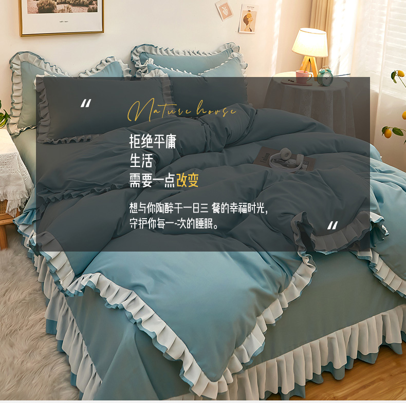 (总)沐珩家纺 2026新款轻奢典藏艺术亲肤磨毛欧式花边床裙款四件套—莫娜,莫娜-孔雀绿,莫娜-梦之蓝,莫娜-绅士灰,莫娜-香槟玉,莫娜-象牙白,莫娜-烟薰紫,莫娜-胭脂红,莫娜-月光蓝