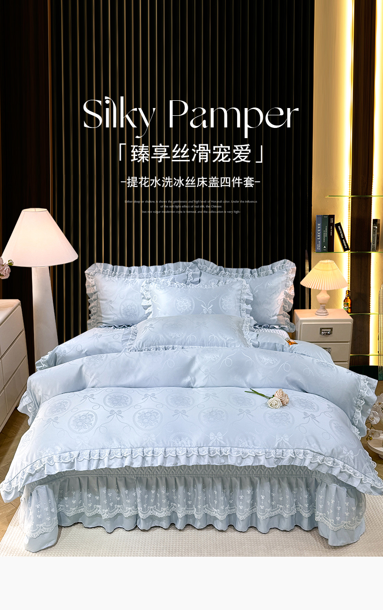 当前位置: 91家纺网 > 商品网购 > 床品套件 > 四件套 > 其它四件套 > 优贝家纺 2026春夏新款提花水洗天丝冰丝天丝韩版夹棉床盖四件套 花涧-粉玉