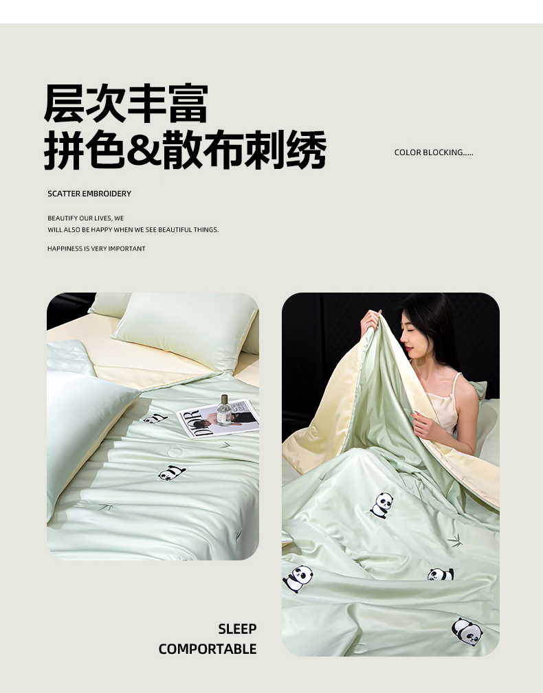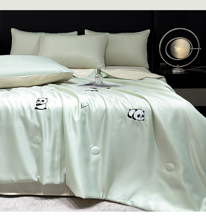 • 91家纺网 家纺一手货源 找家纺 憨豆家纺 2026新款水洗冰丝夏被四件套(升级抗菌棉)水洗真丝绣花系列夏凉被跨境外贸空调被 小熊猫-水果奶黄