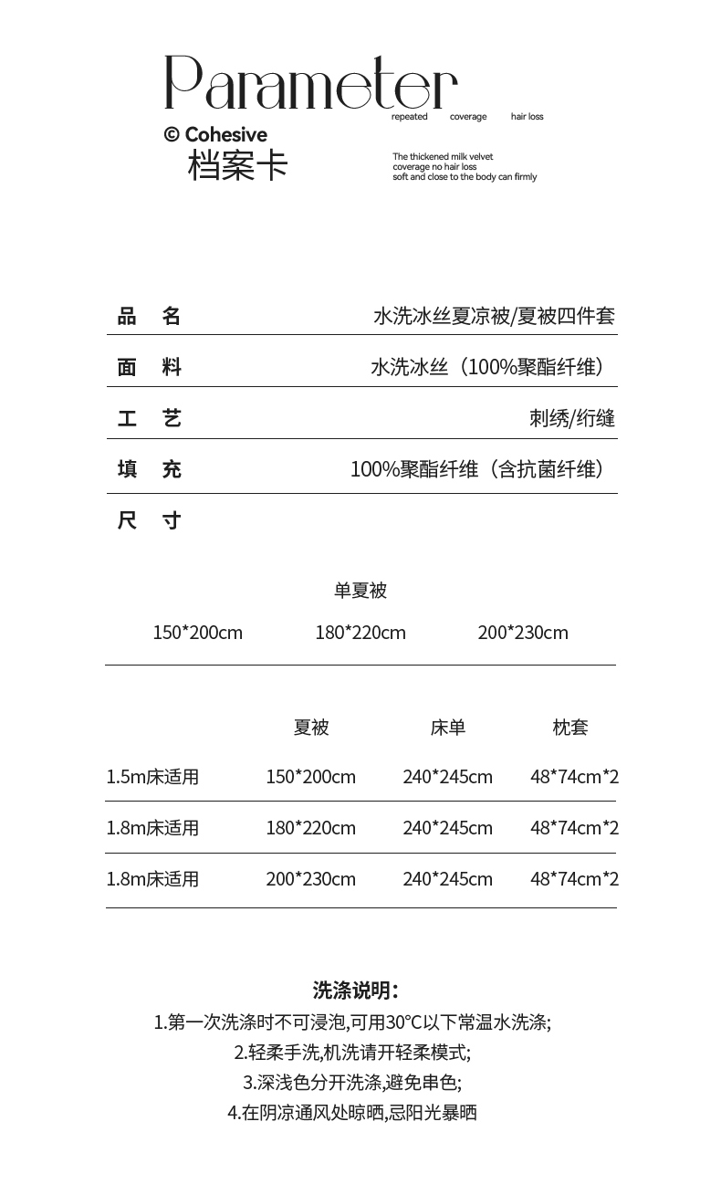 • 适用季节: 空调被/夏凉被