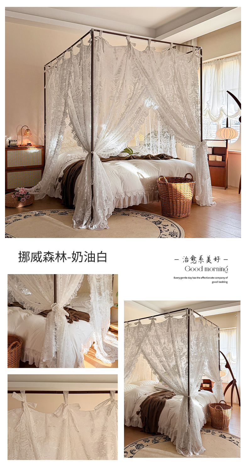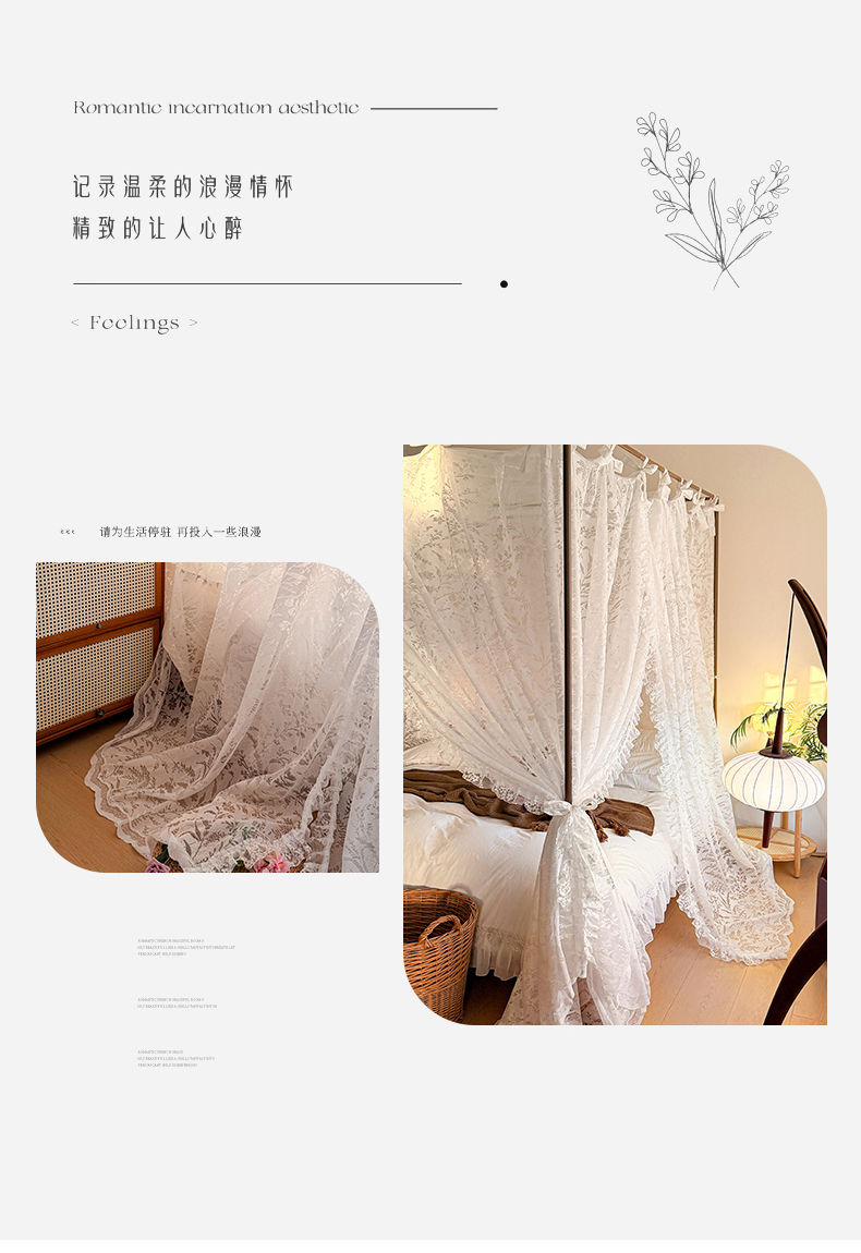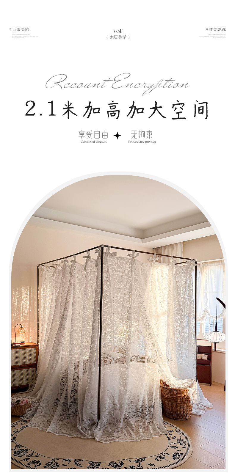 • 91家纺网 家纺一手货源 找家纺 都市缘蚊帐 2026新款浪漫落地蕾丝花边蚊帐905提花系带系列 盛夏-奶油白