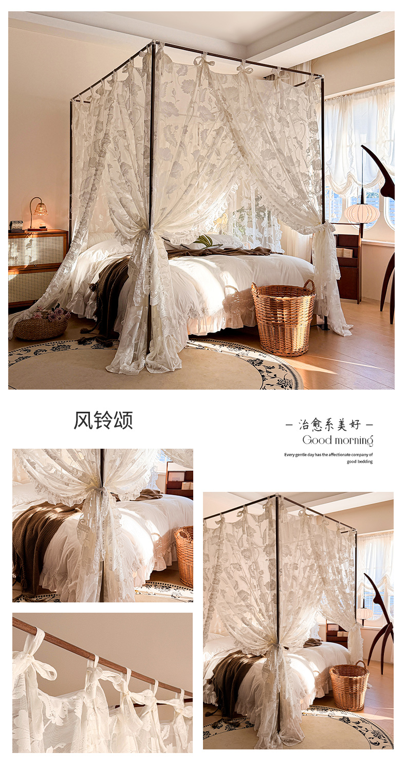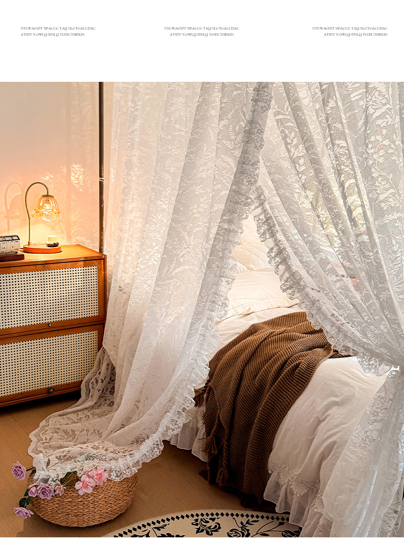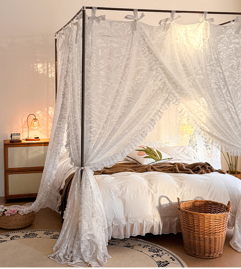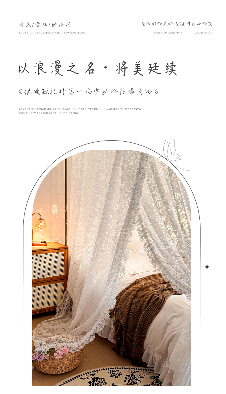 • 91家纺网 家纺一手货源 找家纺 都市缘蚊帐 2026新款浪漫落地蕾丝花边蚊帐905提花系带系列 盛夏-奶油白