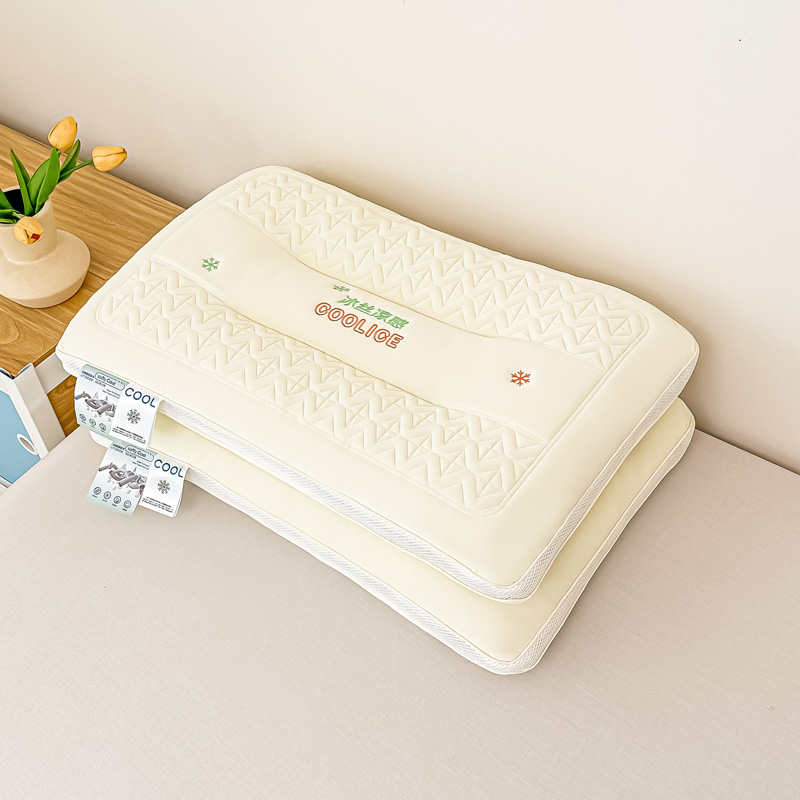 商品名称:(总)浩宇家纺 2026新款冰丝凉感枕头枕芯刺绣护颈枕成人家用舒适定型款6308