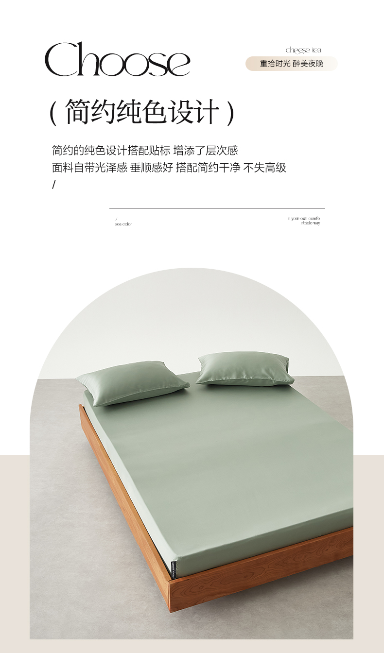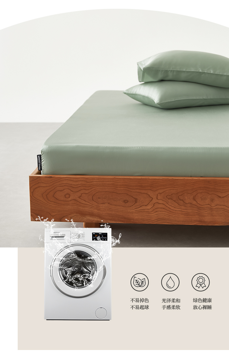 • 91家纺网 家纺一手货源 找家纺 EH家居 2026春夏新款简约纯色天丝单品床笠 松香绿