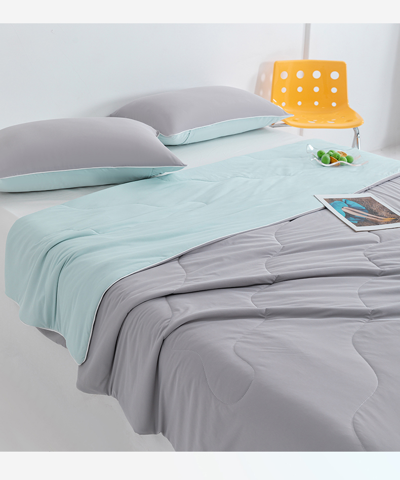 梵心家纺 2026新款凉感A类氨纶凉感丝夏被(10%氨纶)空调被大豆夏凉被 珍珠灰+水蓝