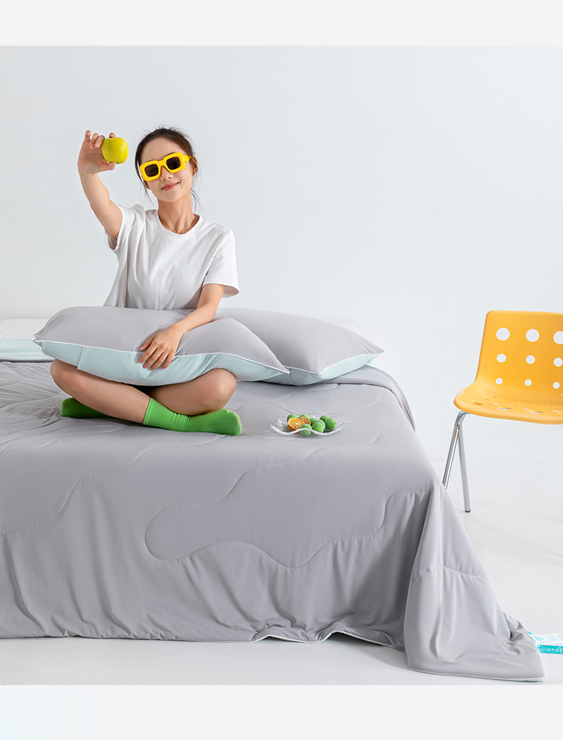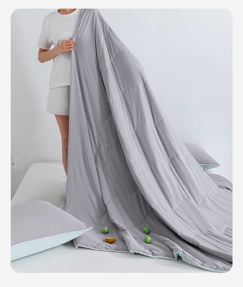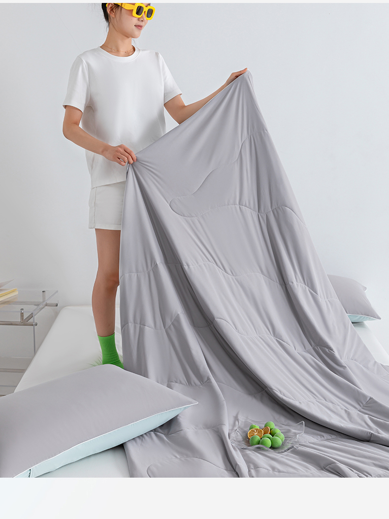 商品名称:梵心家纺 2026新款凉感A类氨纶凉感丝夏被(10%氨纶)空调被大豆夏凉被 珍珠灰+水蓝
