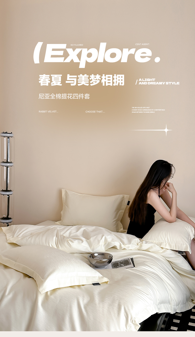 商品名称:三味舒屋 2026新款长绒棉全棉提花四件套-尼亚系列拍法二 尼亚象牙色