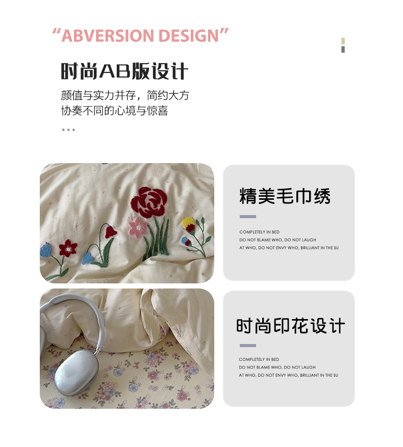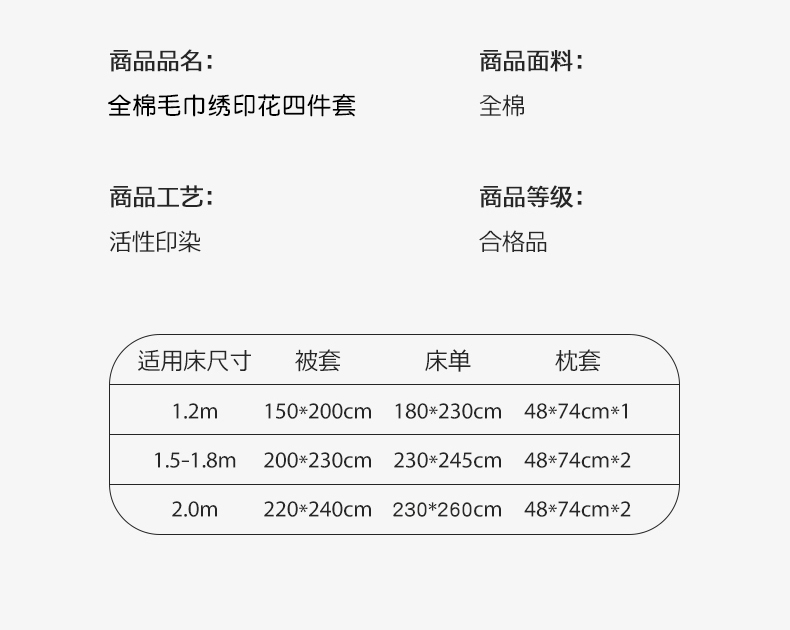 商品名称:(总)乐窝家纺仓储 2026新款A类母婴级13370全棉纯棉毛巾绣四件套学生宿舍三件套单床单被套