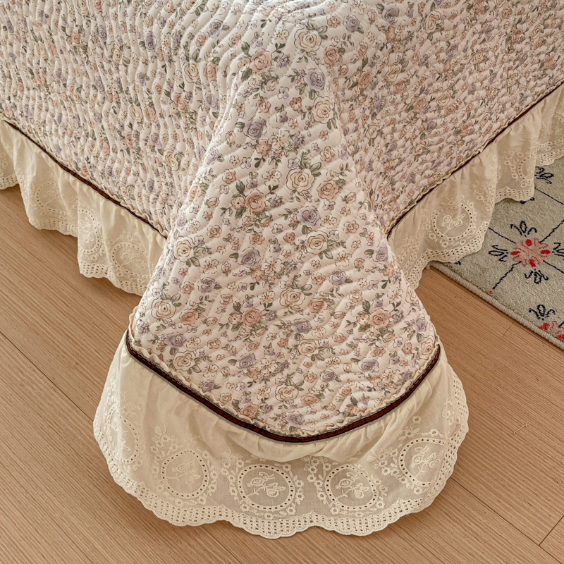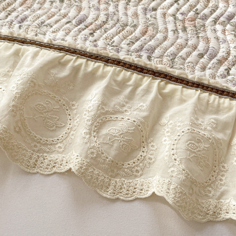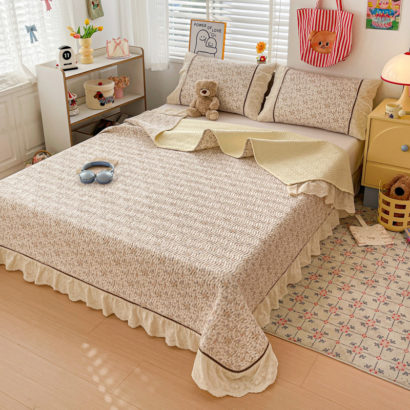 岚吉家纺 2026年新款A类法式全棉花边床盖三件套四件套 露华浓-咖