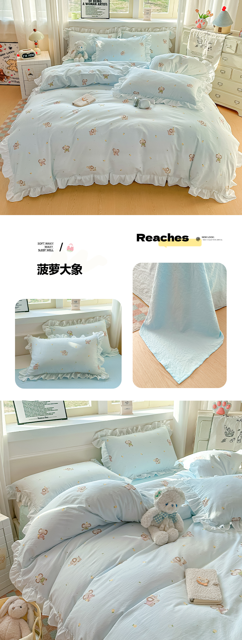 当前位置: 91家纺网 > 商品网购 > 床品套件 > 四件套 > 化纤普通四件套 > 逸尚阁家纺 2026新款水洗仿棉印花花边四件套-终版 菠萝大象