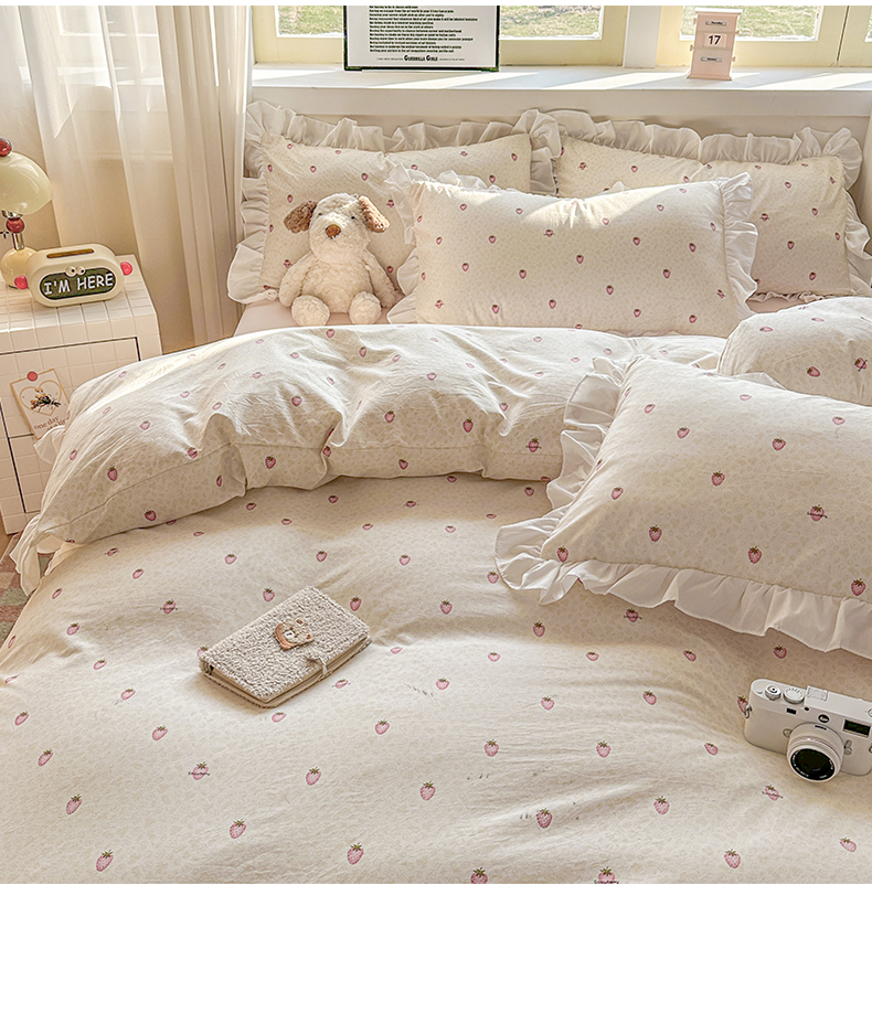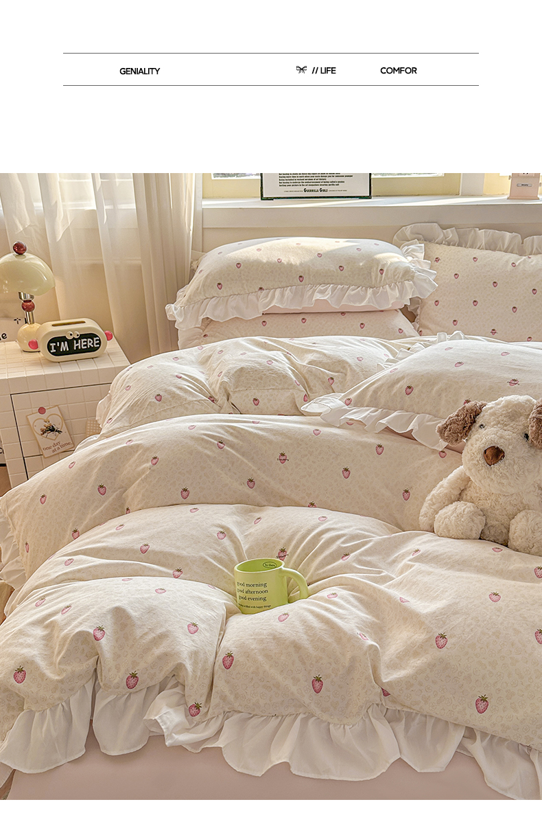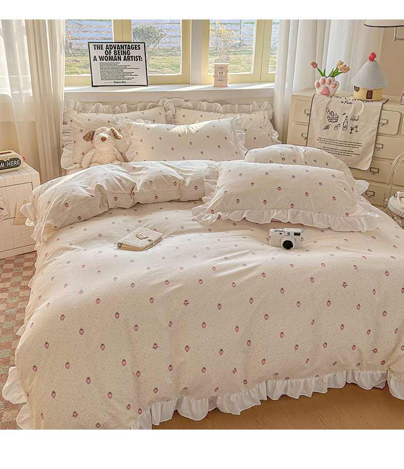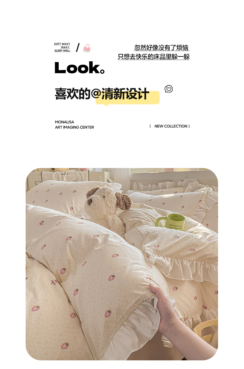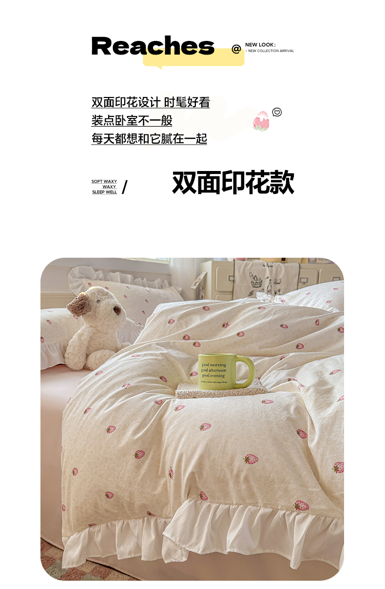 当前位置: 91家纺网 > 商品网购 > 床品套件 > 四件套 > 化纤普通四件套 > 逸尚阁家纺 2026新款水洗仿棉印花花边四件套-终版 甜甜草莓区