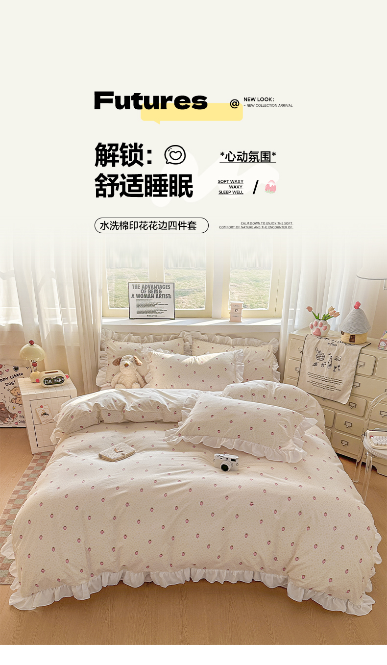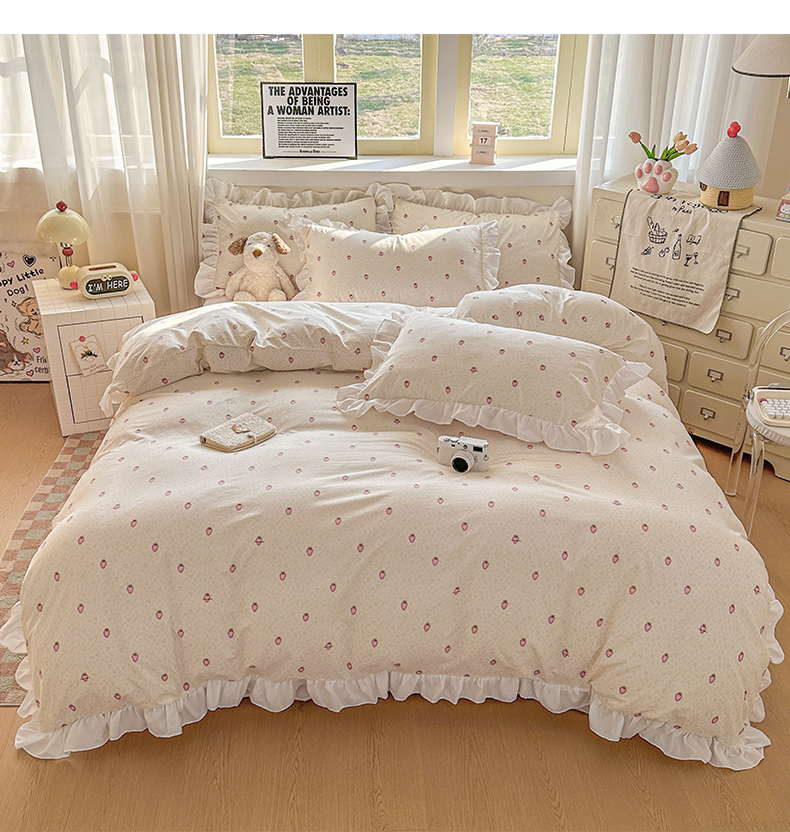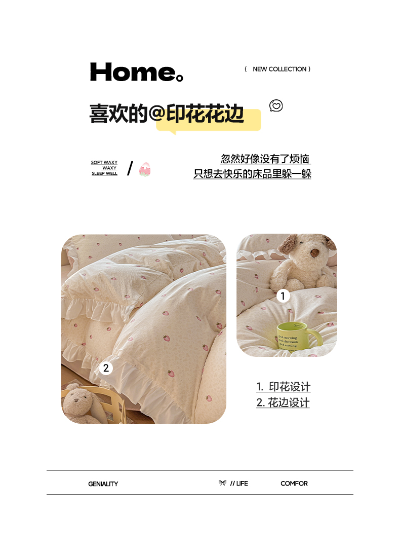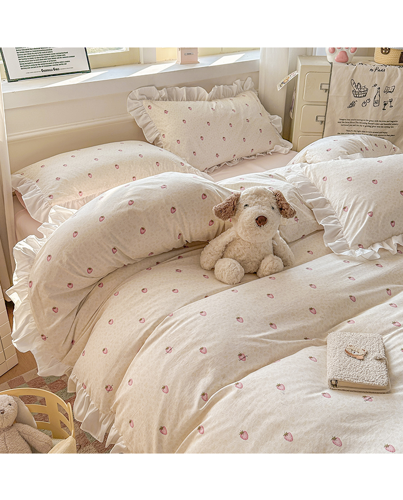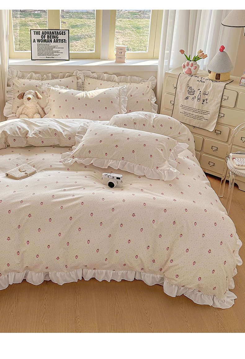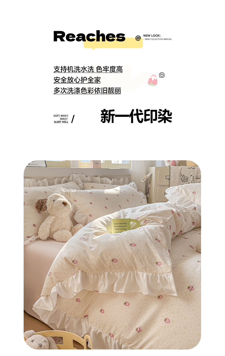 当前位置: 91家纺网 > 商品网购 > 床品套件 > 四件套 > 化纤普通四件套 > 逸尚阁家纺 2026新款水洗仿棉印花花边四件套-终版 甜甜草莓区
