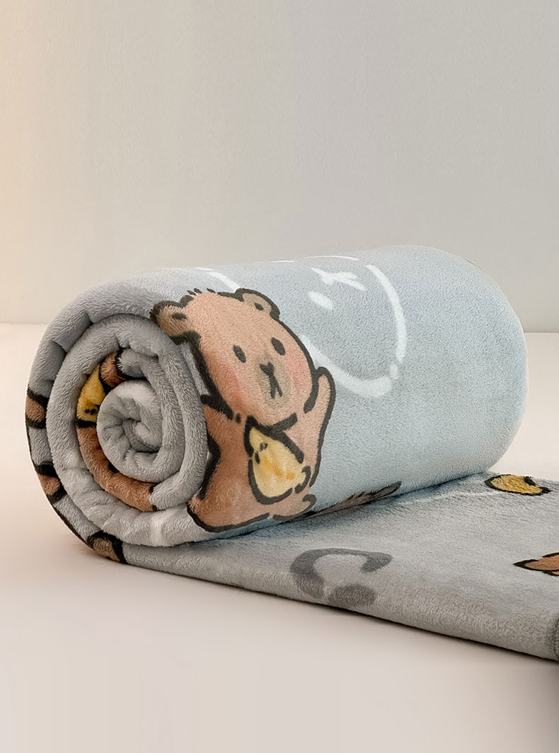 宅部落 2026新款亲肤舒适牛奶绒印花毛毯毯子300克云貂绒盖毯毯子 卡皮巴拉