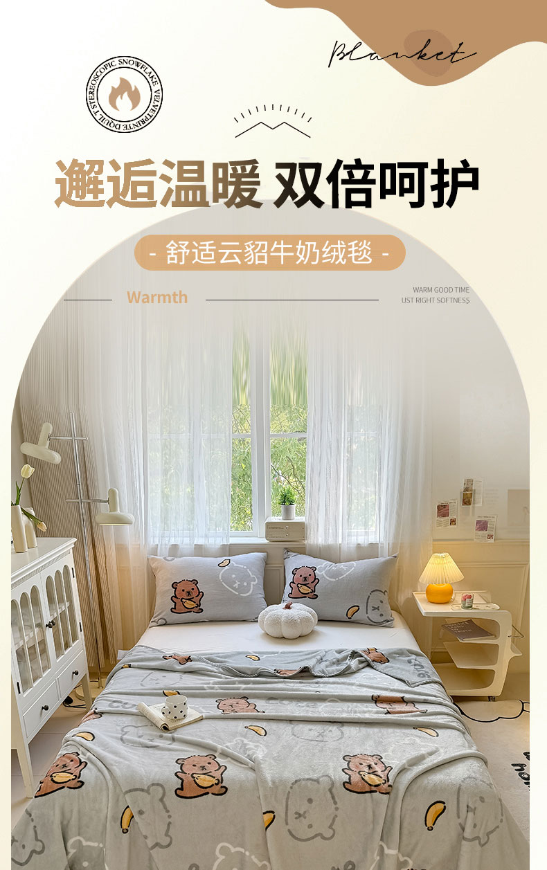 商品名称:宅部落 2026新款亲肤舒适牛奶绒印花毛毯毯子300克云貂绒盖毯毯子 卡皮巴拉