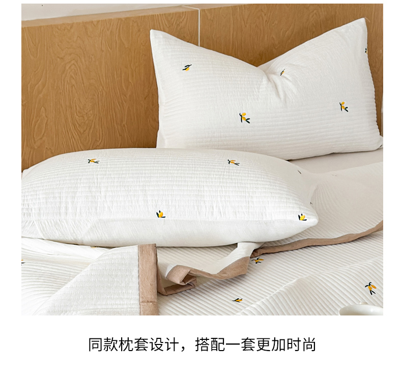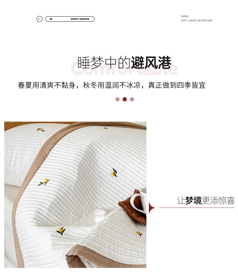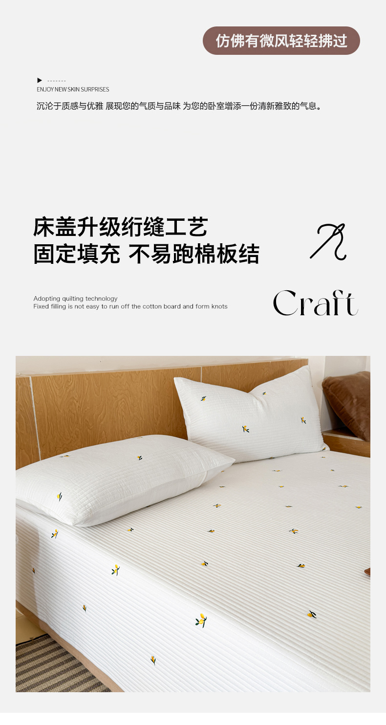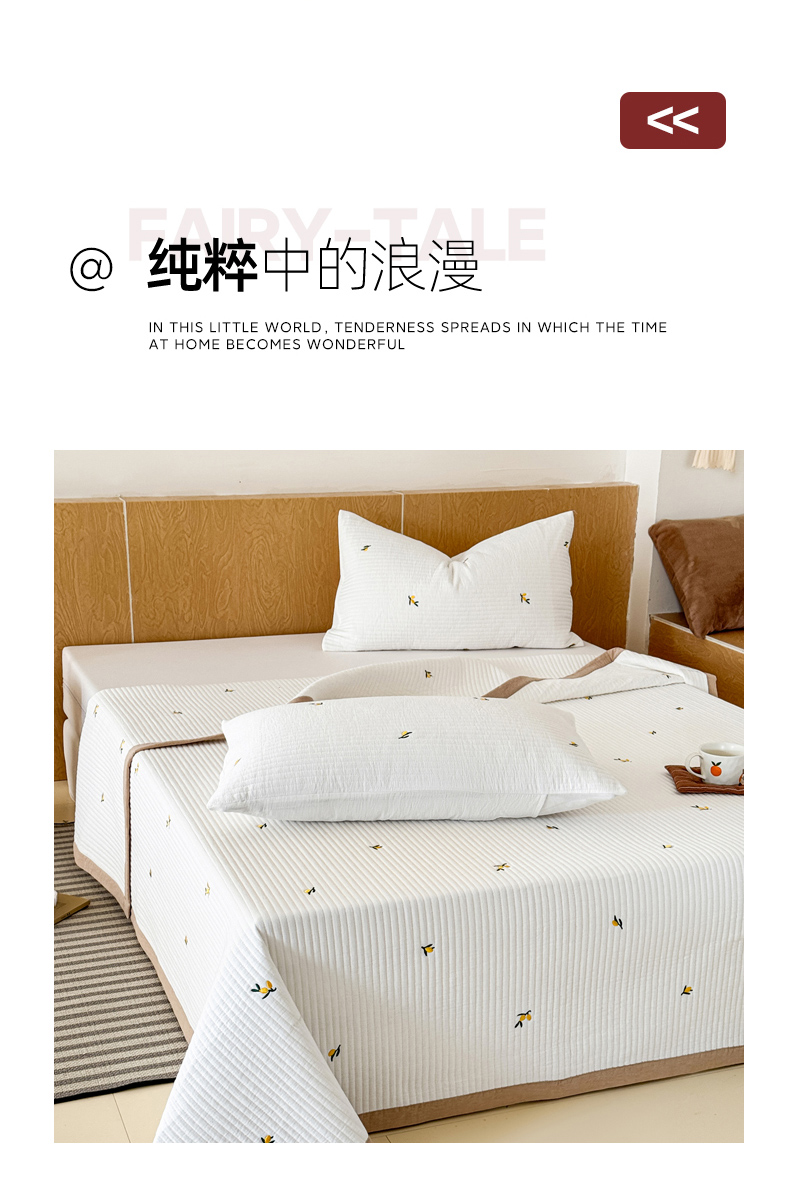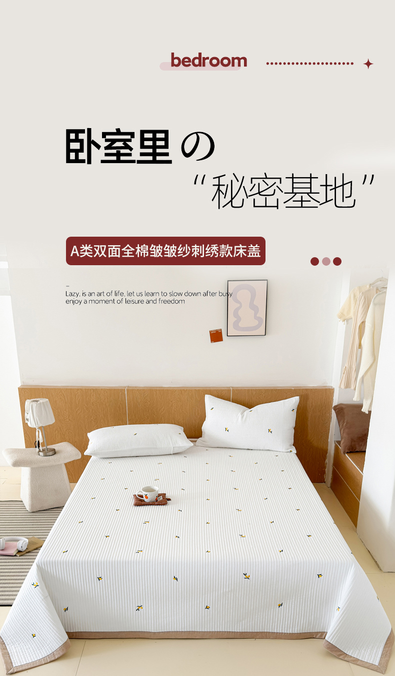 商品名称:木楌家居 2026春夏新款双面全棉纯棉皱皱纱刺绣款床盖床盖单件 小芽日记