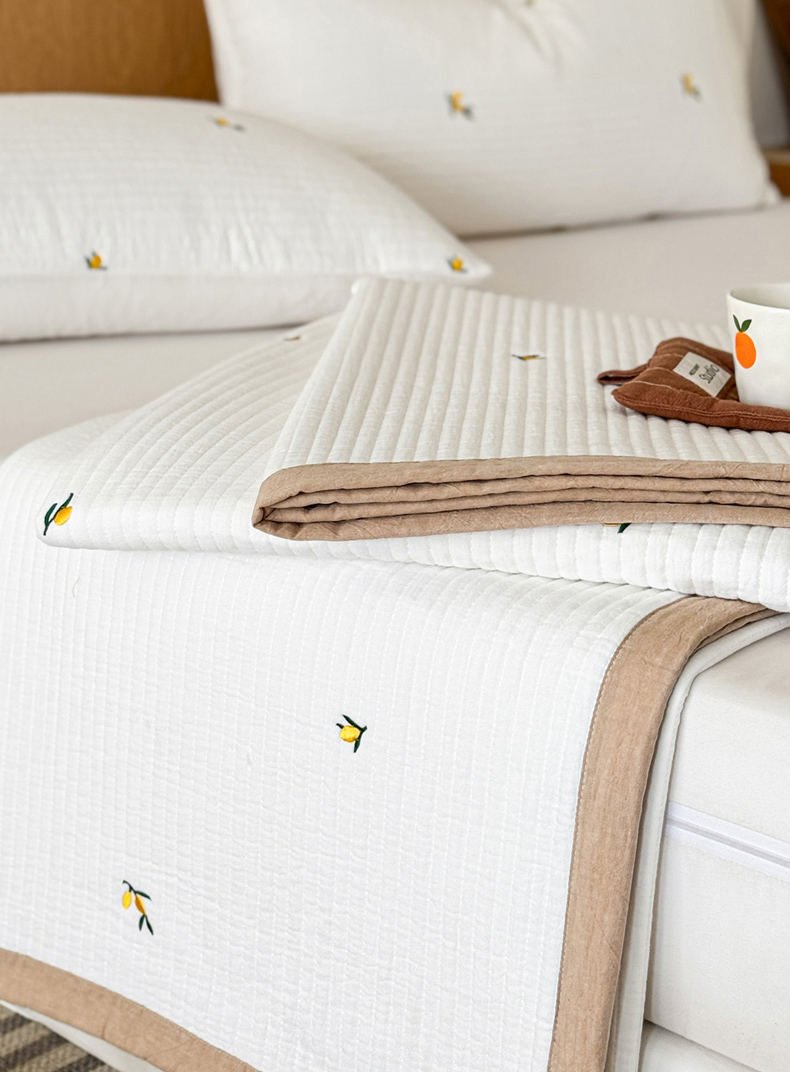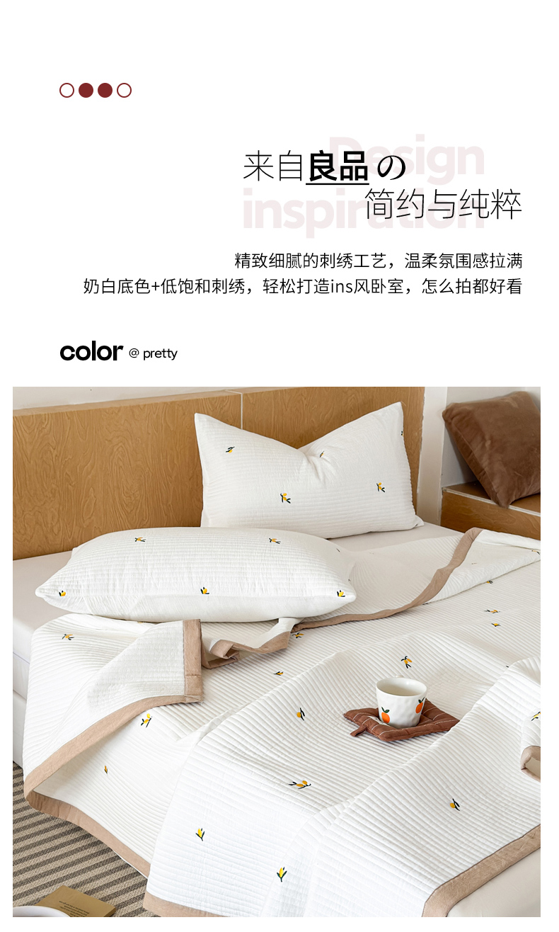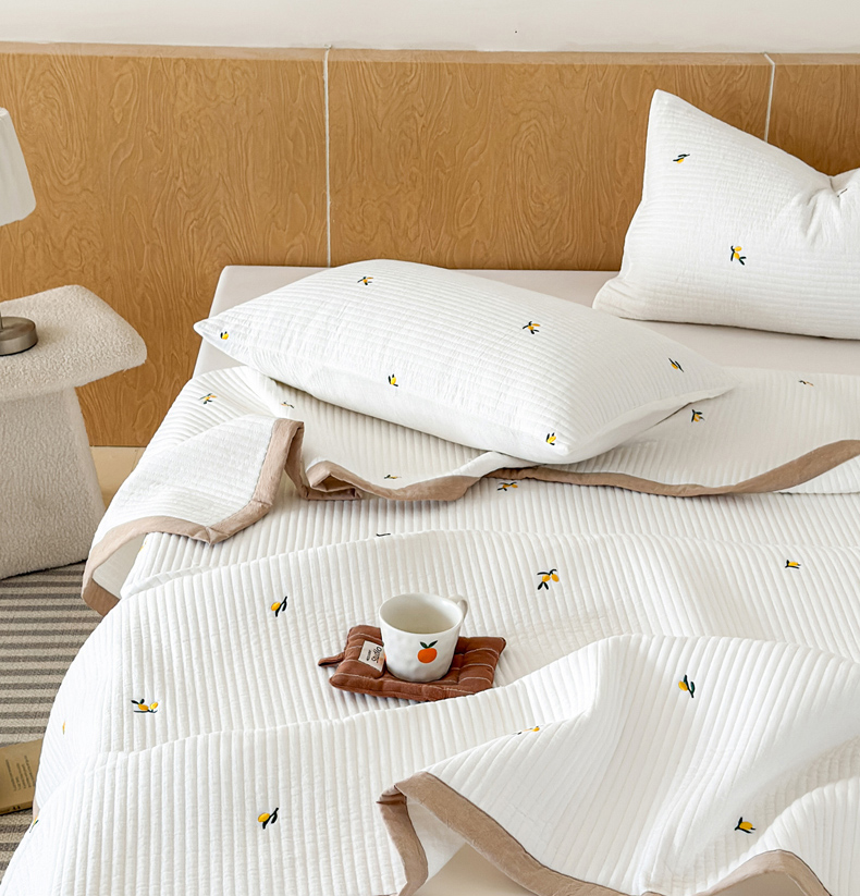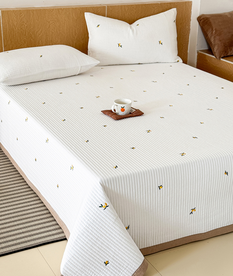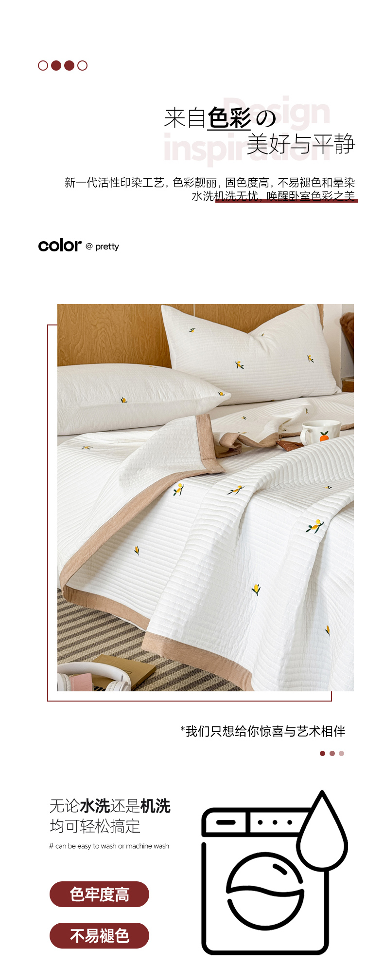 商品名称:木楌家居 2026春夏新款双面全棉纯棉皱皱纱刺绣款床盖床盖单件 小芽日记