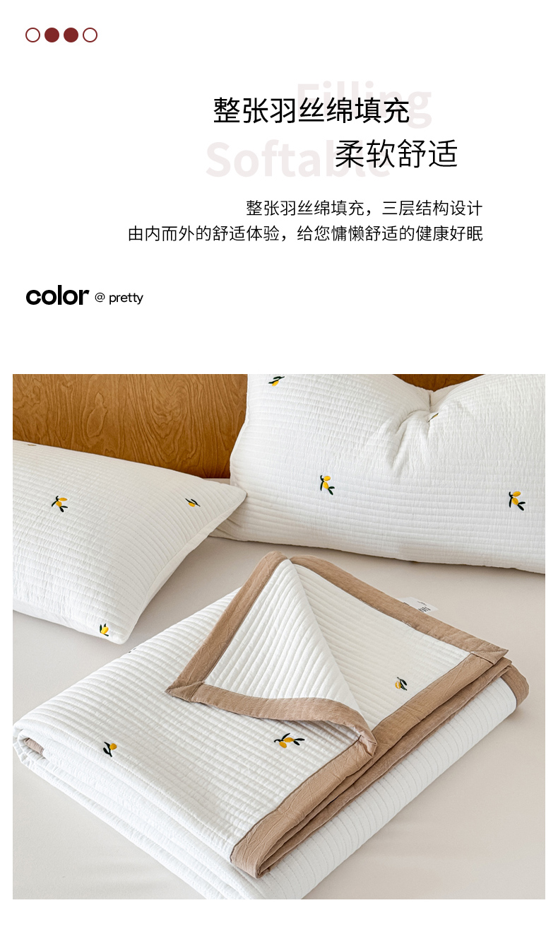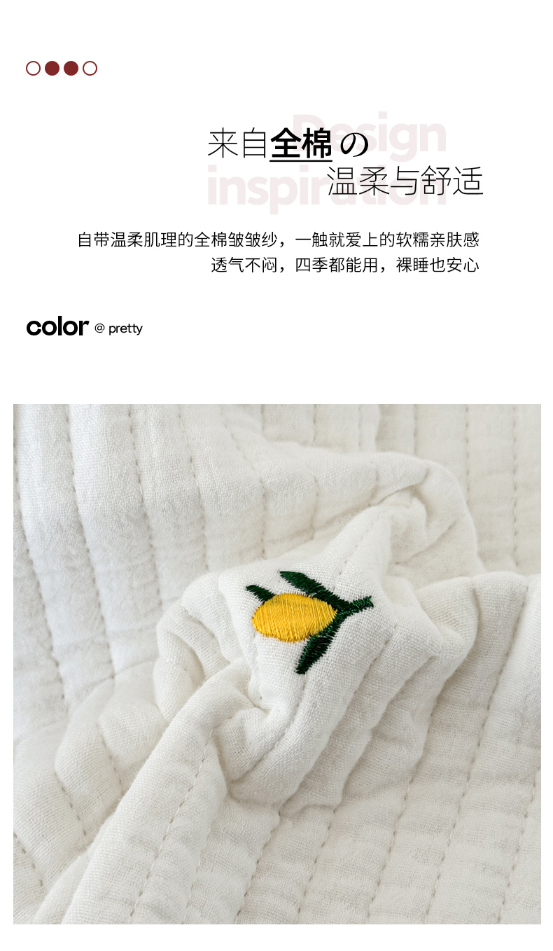 (总)木楌 2025年新款双层皱皱纱刺绣款夏被大豆被,蓓蕾,小飞象,蝴蝶结,领结兔,枇杷叶,三叶草,小樱桃,幸运熊