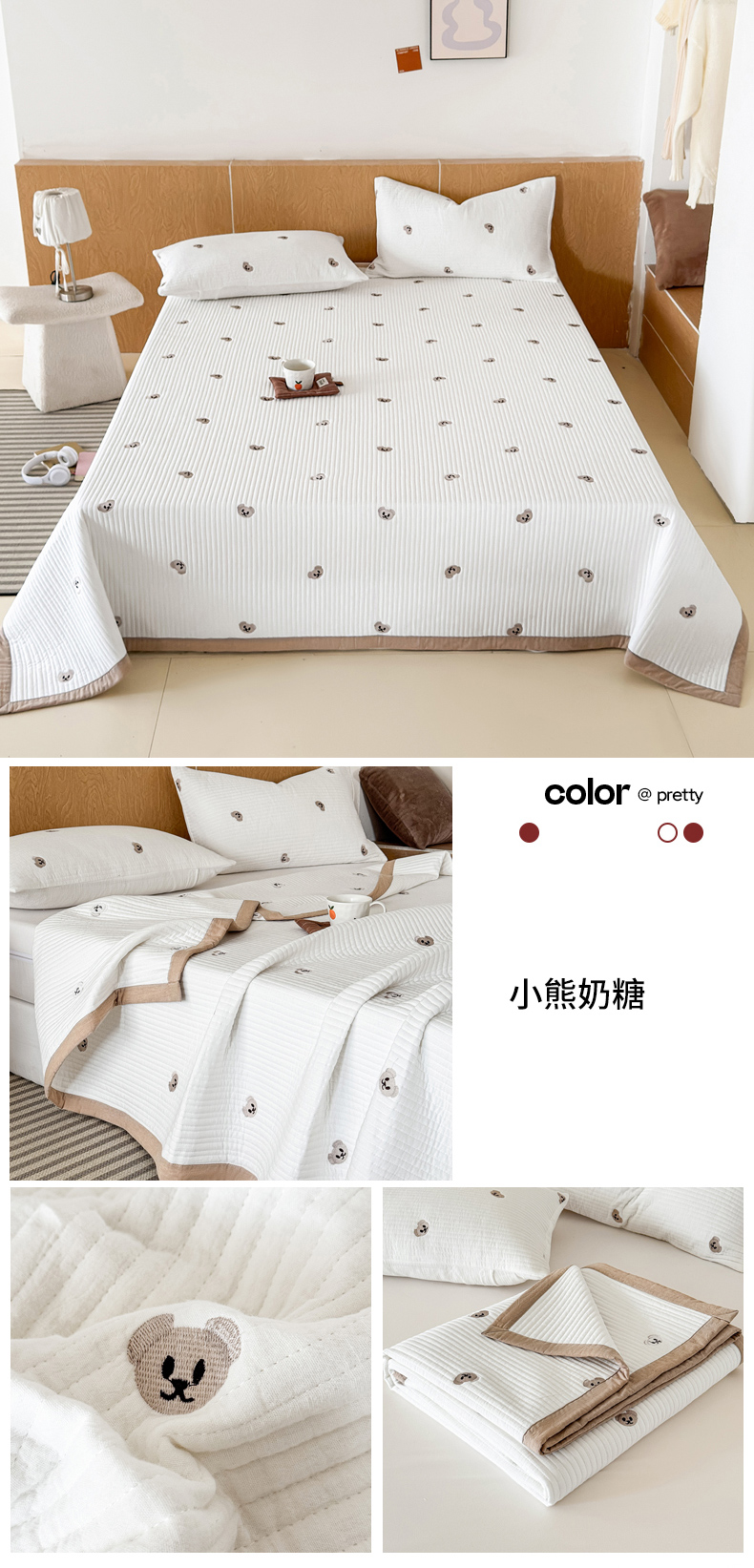 (总)木楌家居 2026春夏新款双面全棉纯棉皱皱纱刺绣款床盖床盖单件,组合图仅供展示不可下单,花漾时光,奶咖蝴蝶结,小熊奶糖,小芽日记,樱桃小方糖,月落星眠