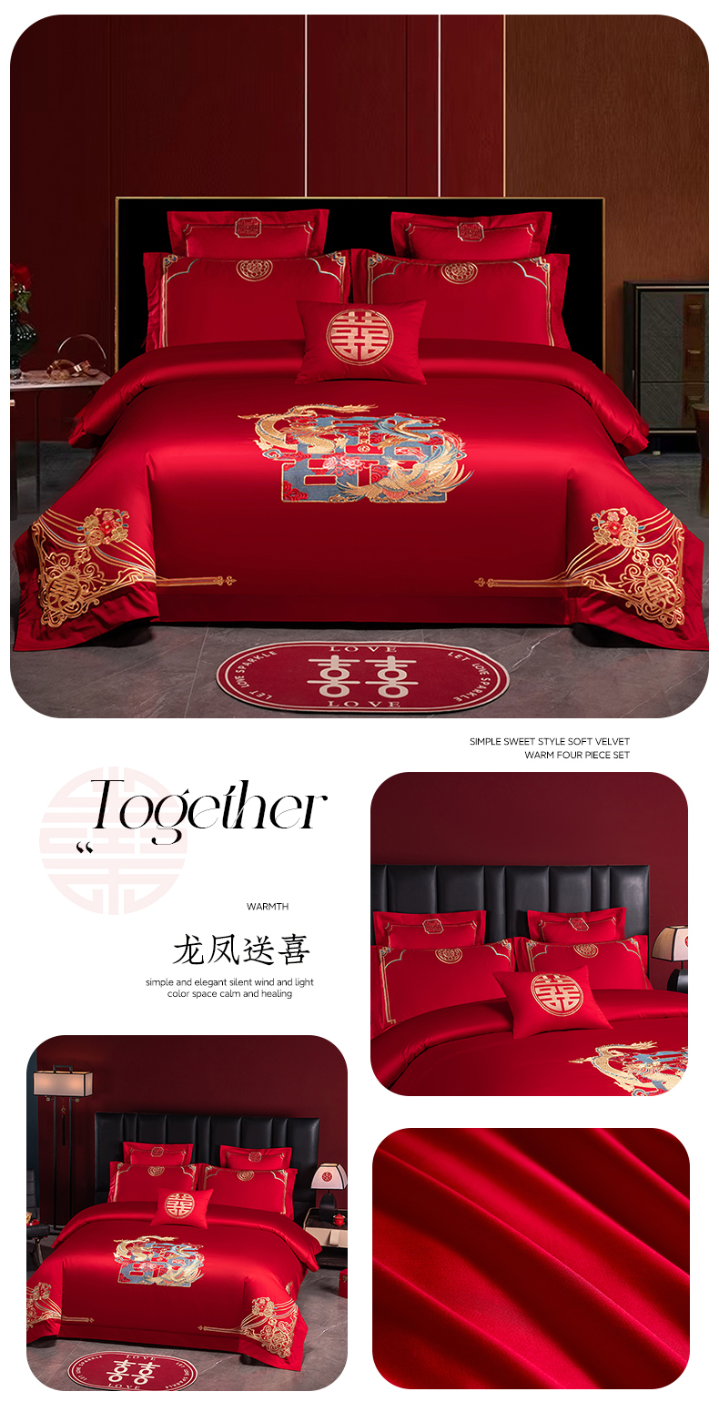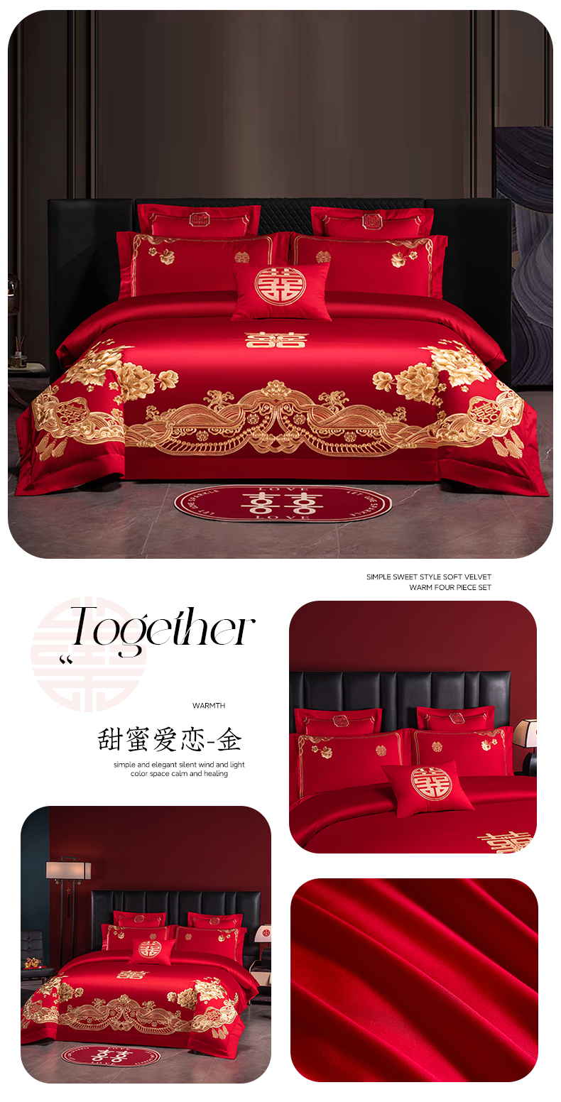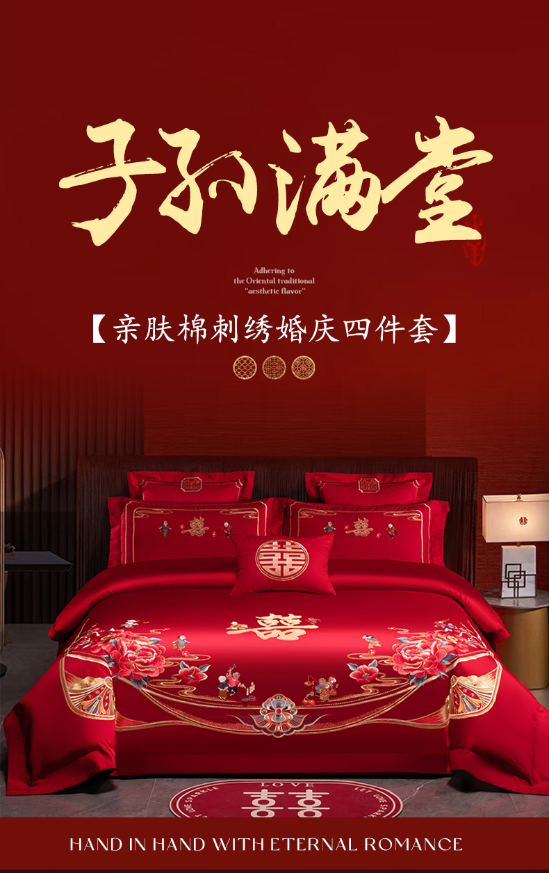 当前位置: 91家纺网 > 商品网购 > 床品套件 > 四件套 > 婚庆四件套 > 博之洋婚庆 2026新款新中式亲肤棉婚庆大红刺绣系列四件套 子孙满堂