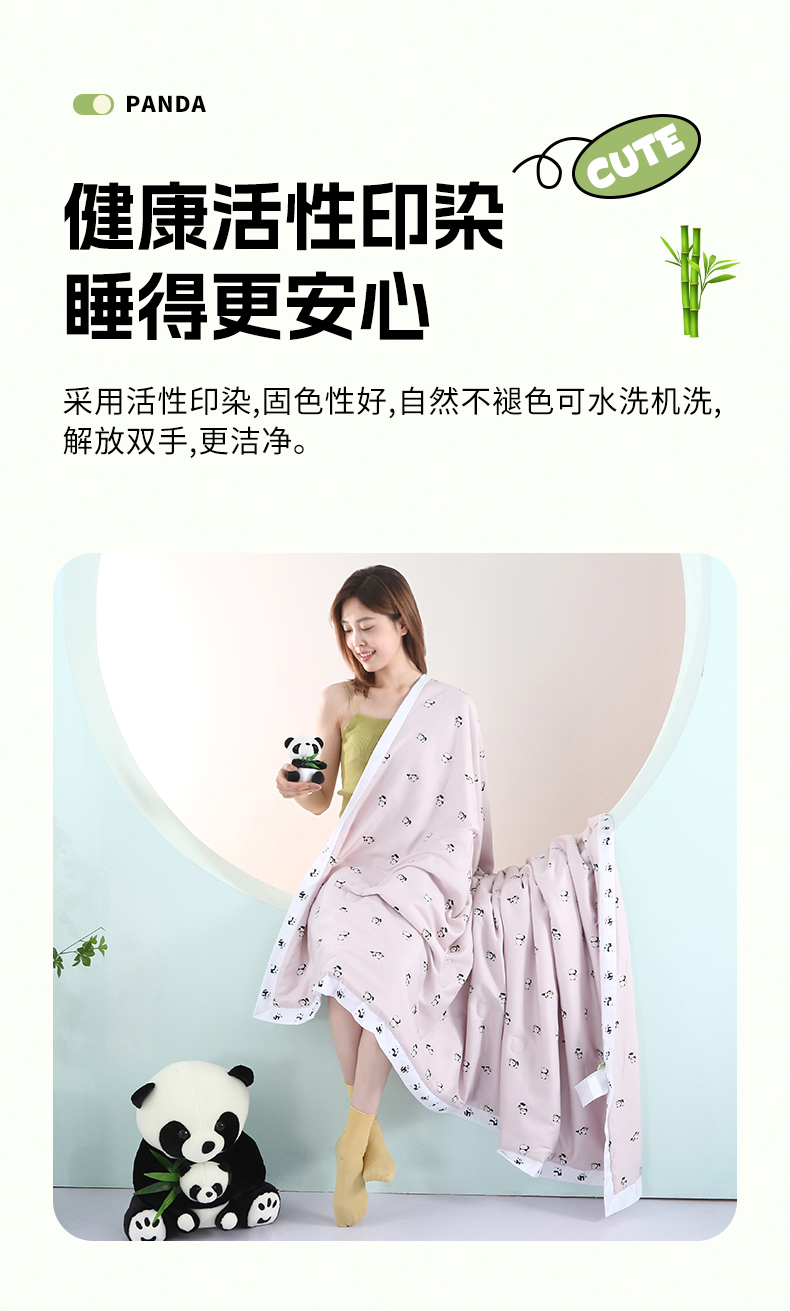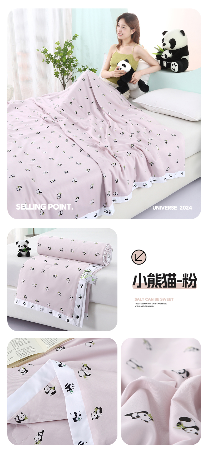 商品名称:薇玛仕 2026小熊猫系列-60支精梳长绒棉双拼角宽边双A类母婴级儿童蚕丝夏凉被空调被 小熊猫-粉