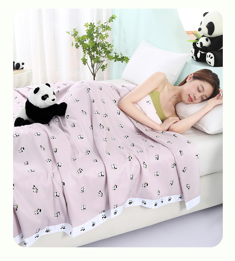 被子 > 夏被 > 薇玛仕 2026小熊猫系列-60支精梳长绒棉双拼角宽边双A类母婴级儿童蚕丝夏凉被空调被 小熊猫-粉