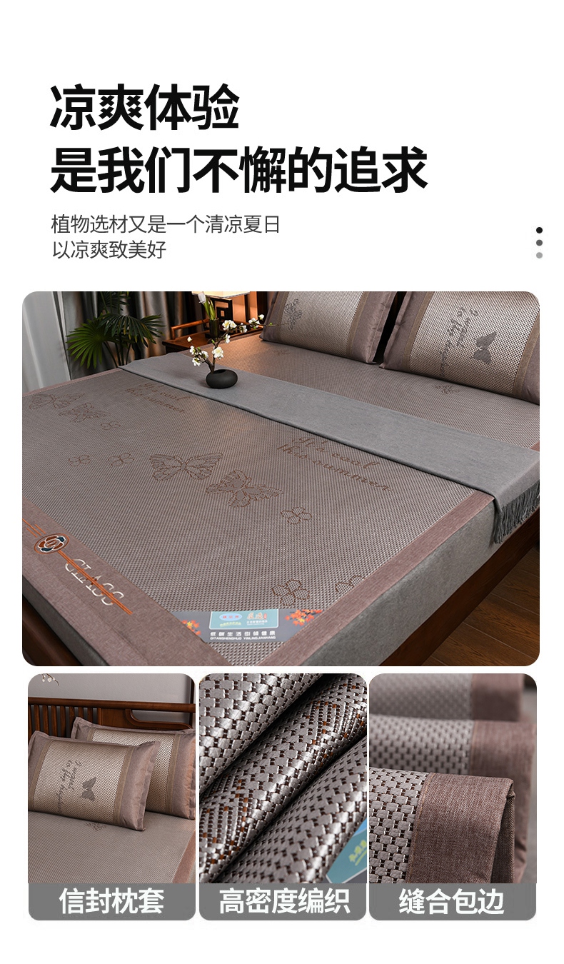 当前位置: 91家纺网 > 商品网购 > 床上用品 > 凉席 > 藤席 > 苏迪网销供货 藤席-凉席 -2026新款凉席冰藤席冰丝席凉感空调席艾草藤席-冰藤席 高端冰藤席 蝶恋 银灰