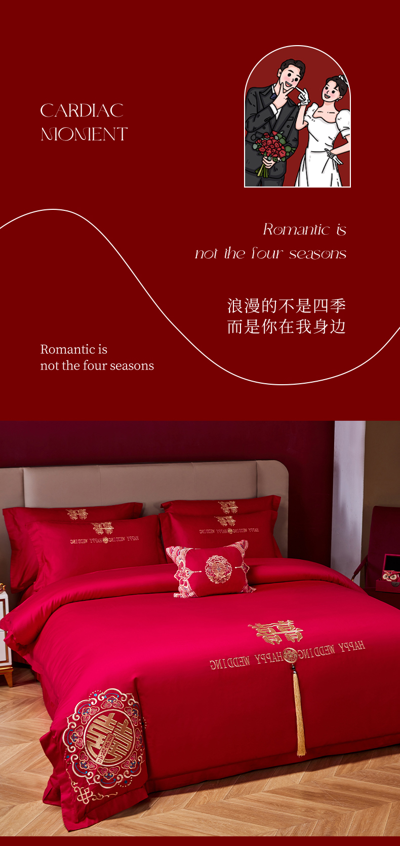 晶缦家纺 2026新款喷气全棉13376纯棉刺绣花婚庆四件套 龙章凤姿