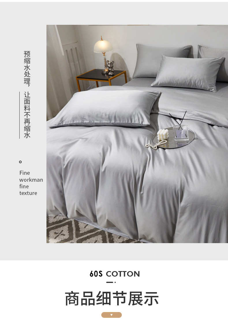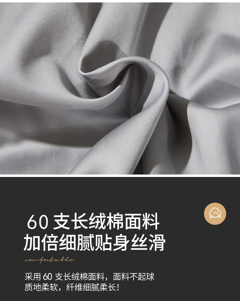 商品名称:晶缦家纺 2026新款全棉A类纯棉60支贡缎长绒棉纯色单枕套单品枕套枕套单件 琳琅-奥丁灰