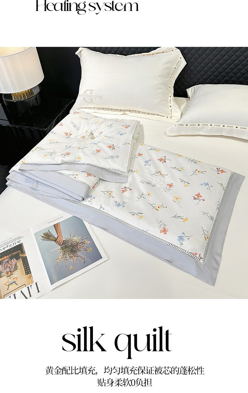 (总)薇玛仕 2026新款绣花80支兰精天丝可水洗蚕丝被100蚕丝填充夏凉被空调被,碧空蓝,春色绿,静谧紫,倩影粉,清雅灰,香槟咖