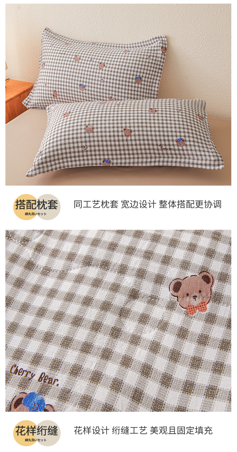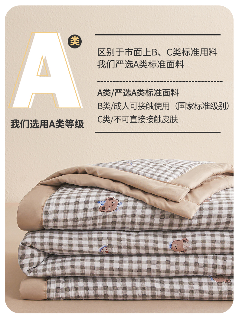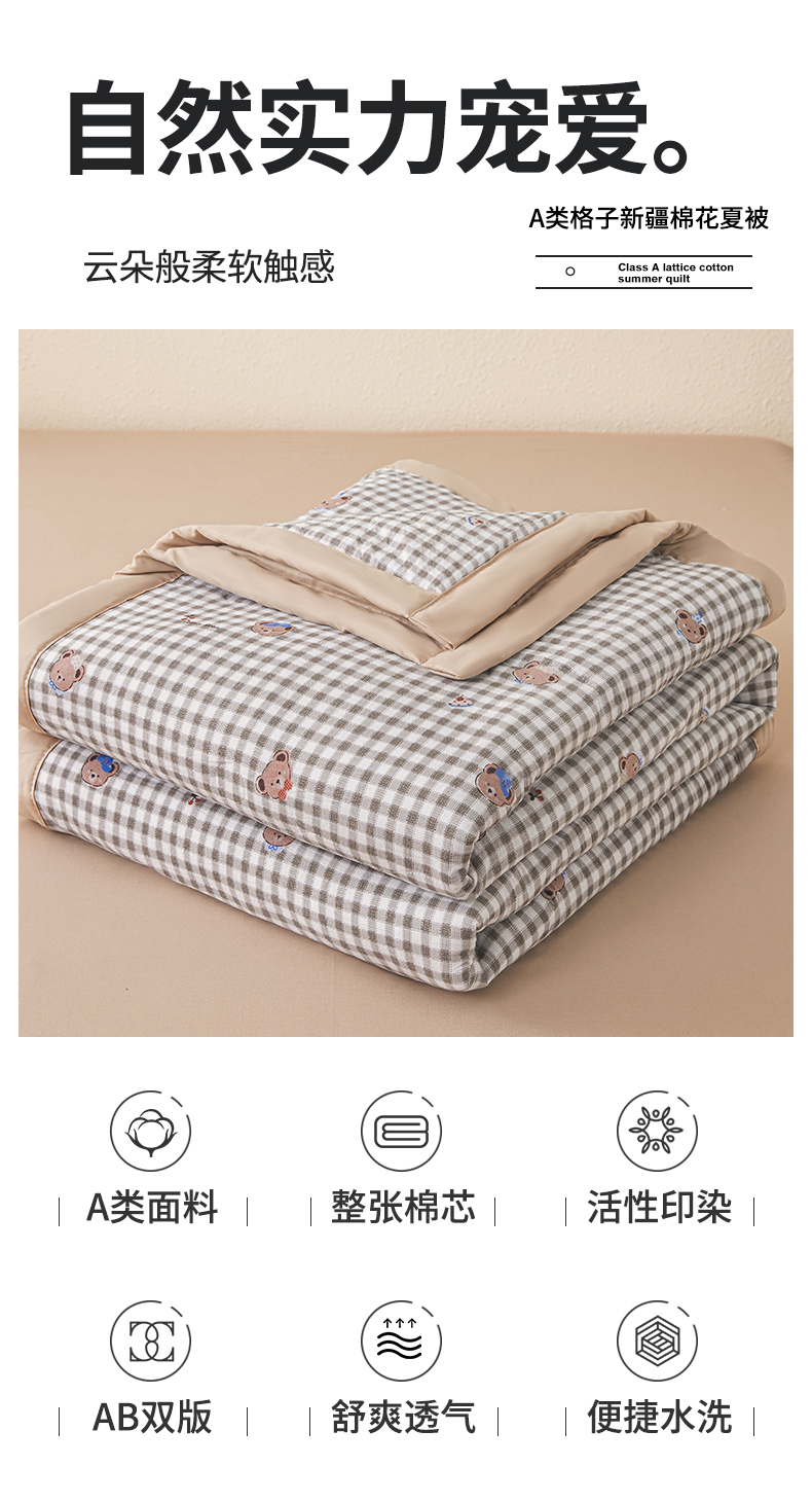 被子 > 夏被 > 西域种棉人·千百笠 2026新款A类新疆棉花夏凉被加宽包边水洗棉无印格子印花吸湿透气棉花夏被空调被 格子熊