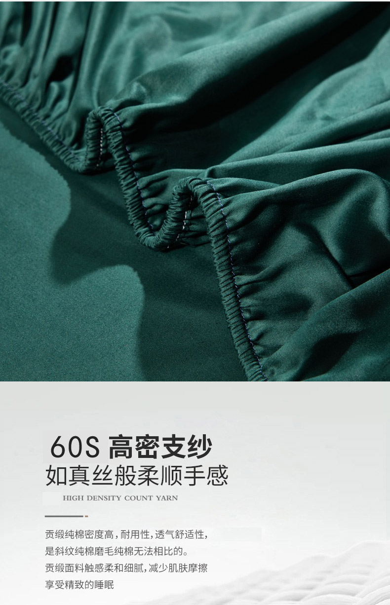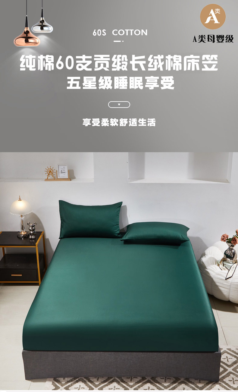 • 91家纺网 家纺一手货源 找家纺 晶缦家纺 2026新款全棉A类纯棉60支贡缎长绒棉纯色单床笠单品床笠床笠单件 琳琅-墨绿色