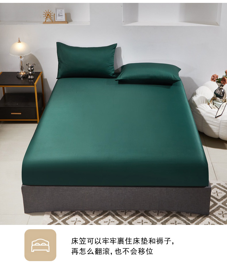 晶缦家纺 2026新款全棉A类纯棉60支贡缎长绒棉纯色单床笠单品床笠床笠单件 琳琅-墨绿色