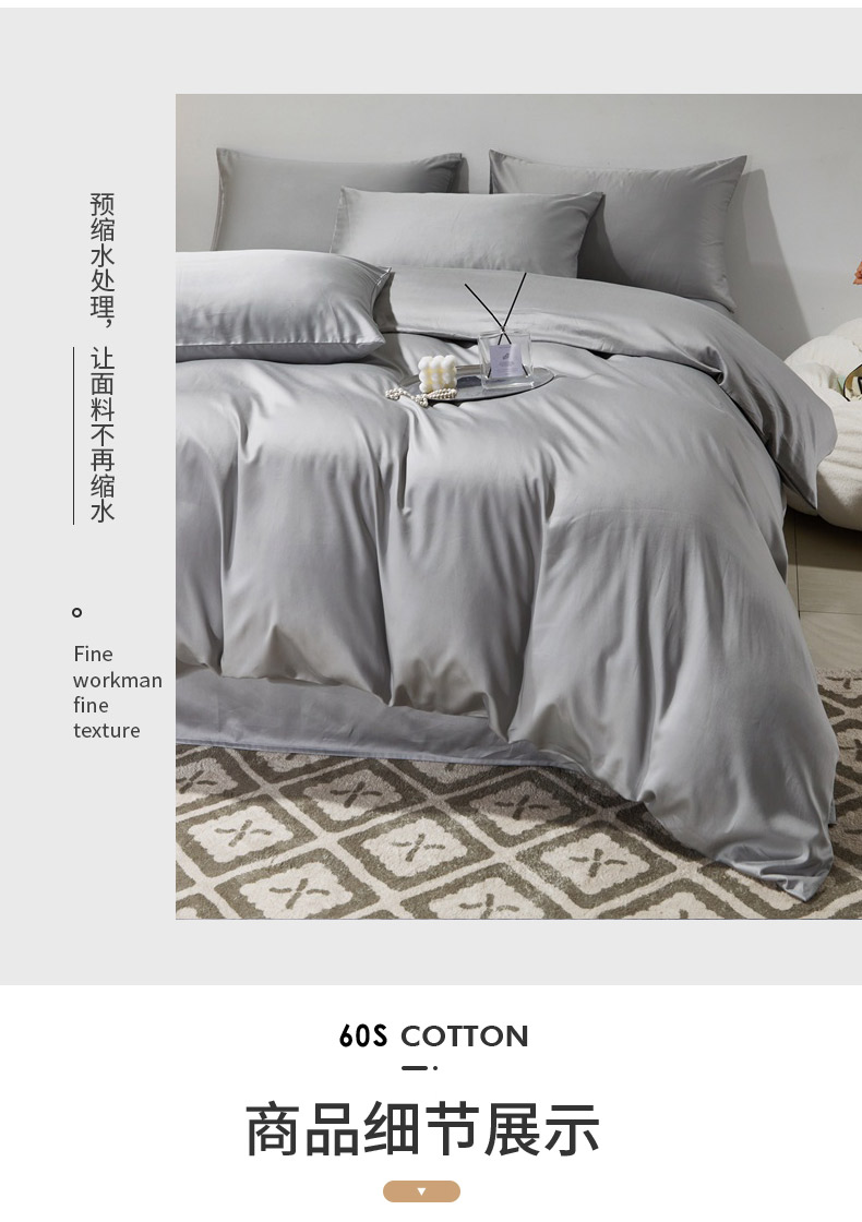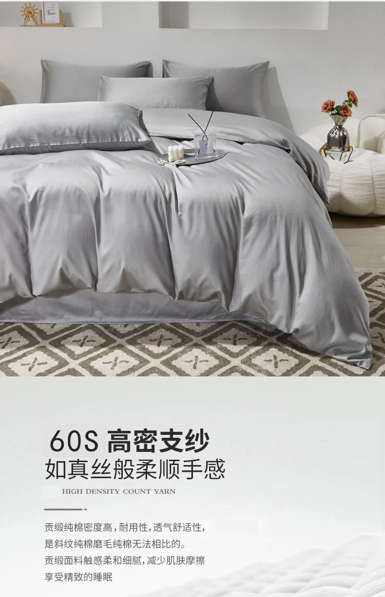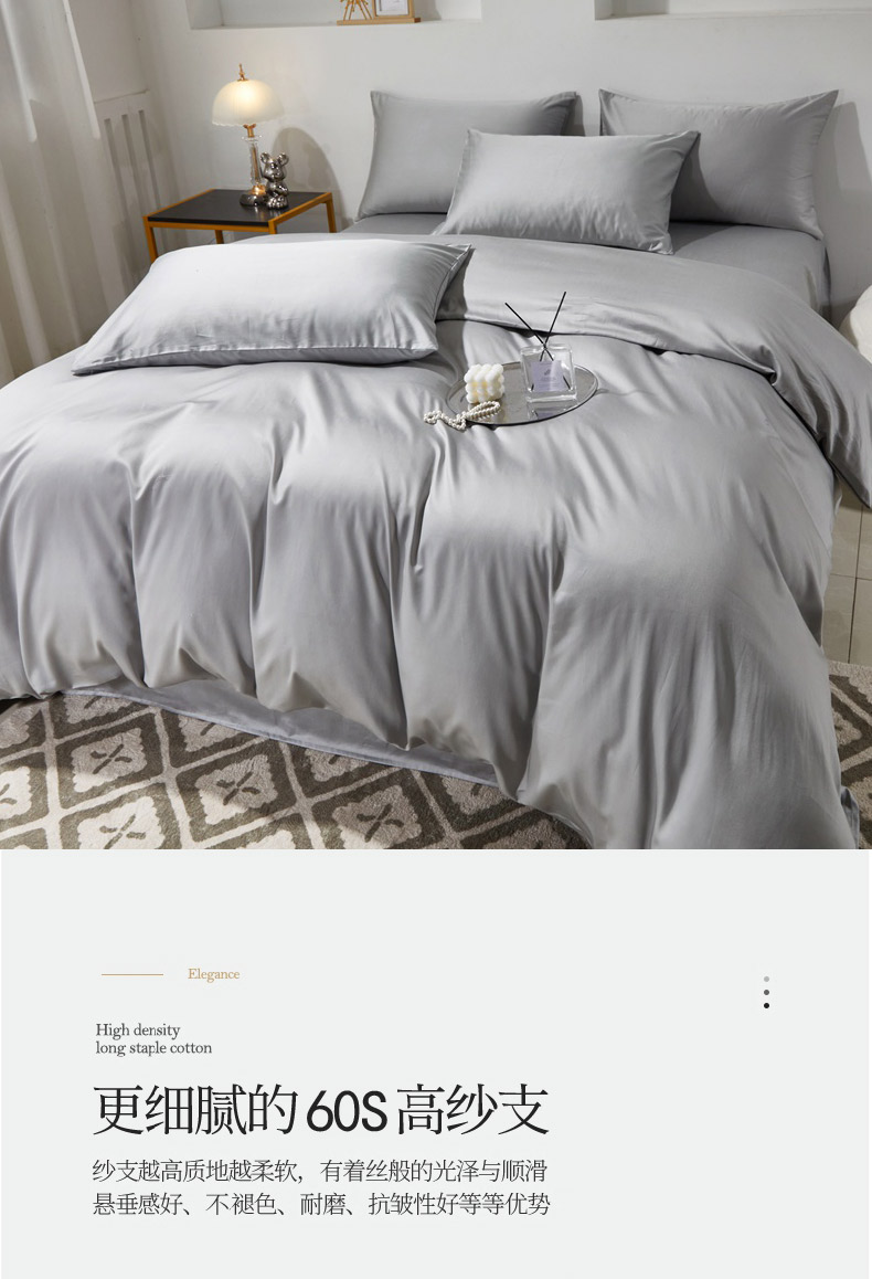 当前位置: 91家纺网 > 商品网购 > 床品套件 > 四件套 > 贡缎全棉四件套 > 晶缦家纺 2026新款全棉A类纯棉60支贡缎长绒棉纯色四件套 琳琅-奥丁灰