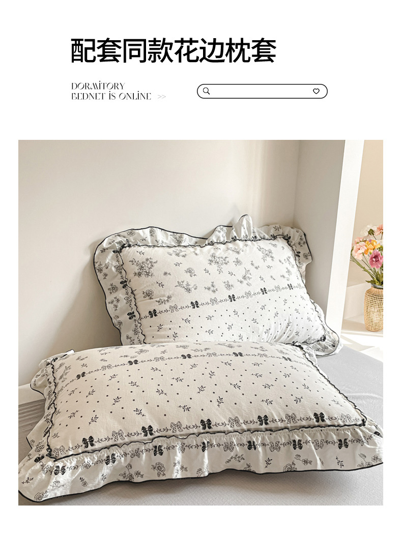(总)柒月家居 2026新款小清新木棉皱皱纱花边款四件套,春意紫,爱心飘飘,豹纹粉,春意粉,粉格猫咪,格子樱桃,蝴蝶结蓝,花田梦,南瓜贝贝,幸运猫咪