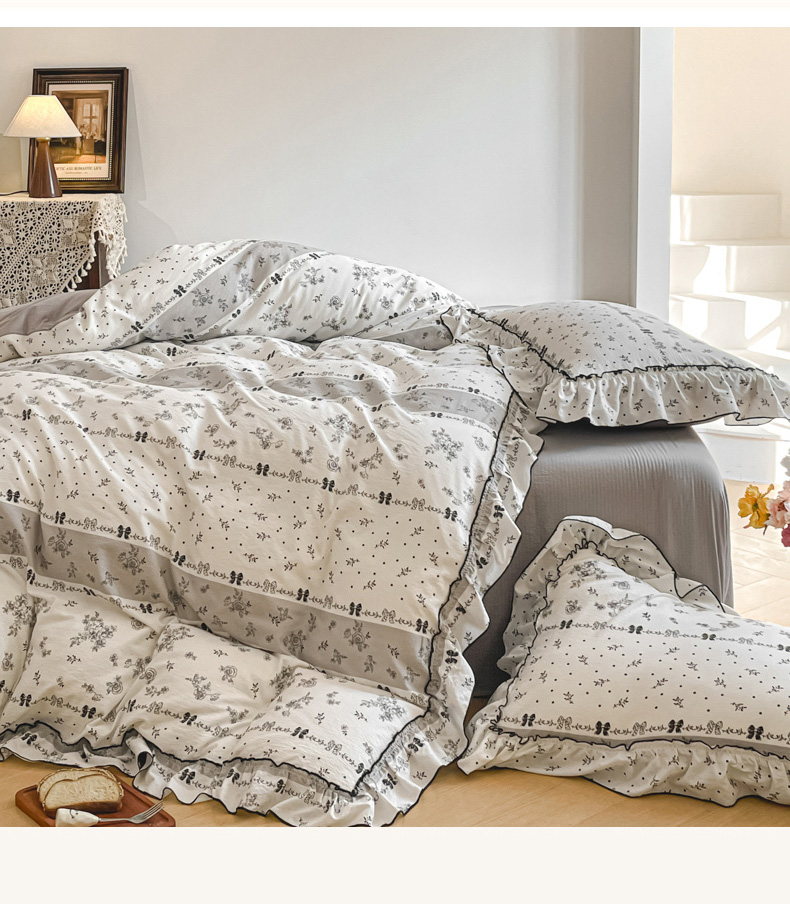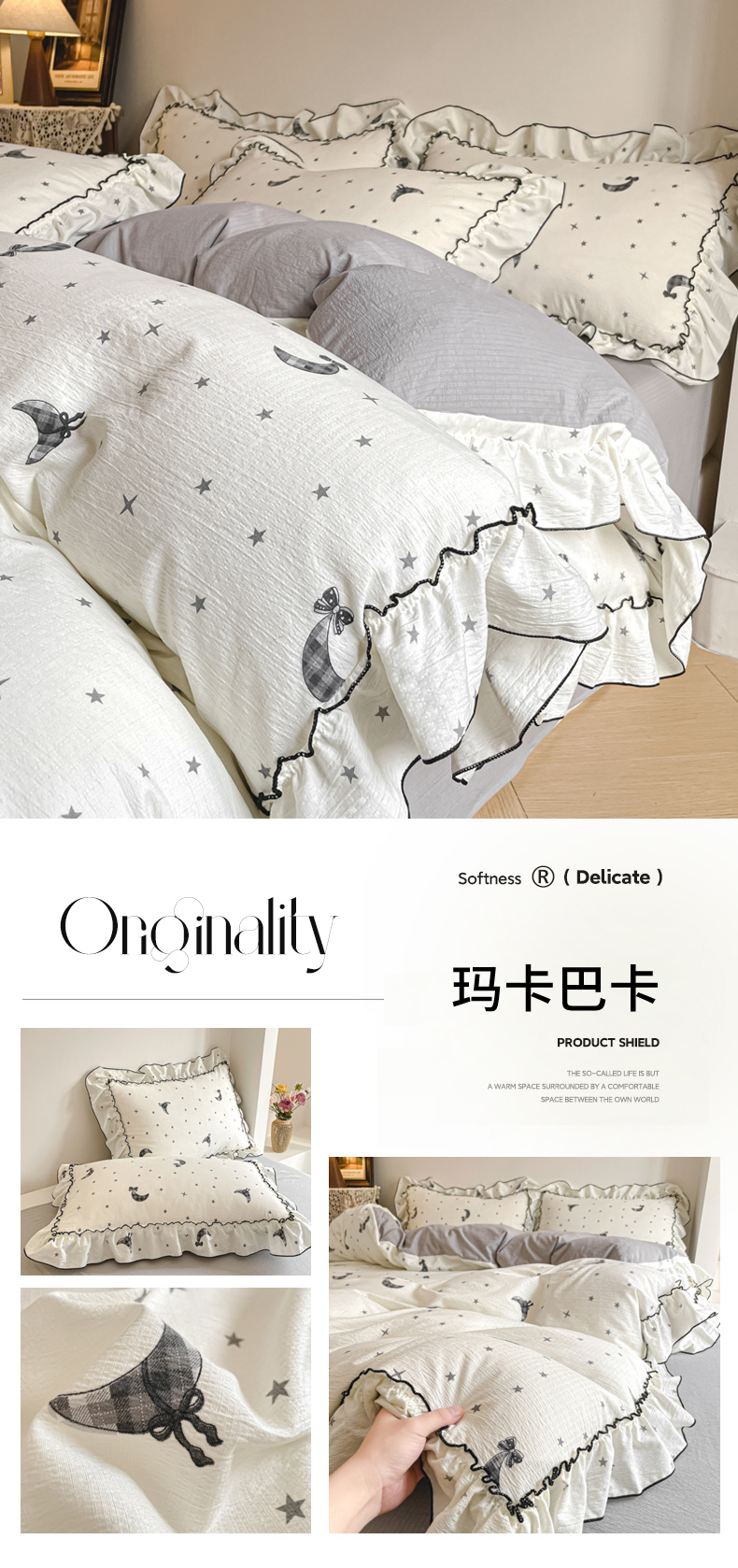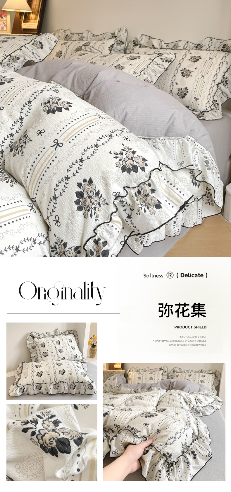 (总)柒月家居 2026新款法式赫本皱皱纱花边四件套