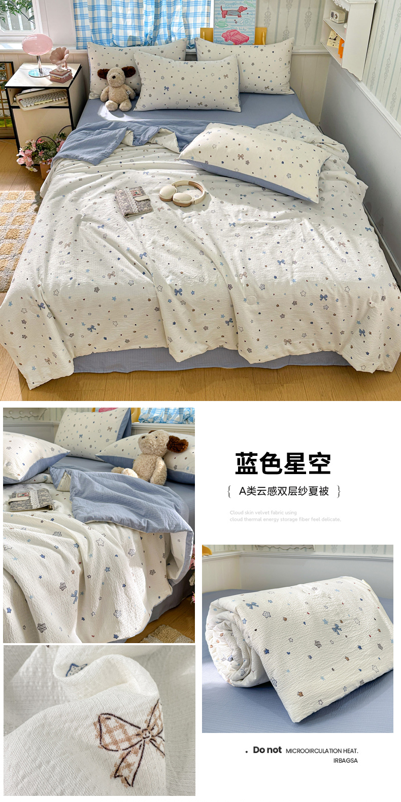 N先生+V 13814689556 发大图/买家秀 2026春夏新款A类泡芙双层纱夏被系列夏凉被空调被 蓝色星空(夏被)