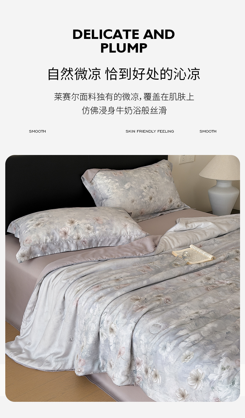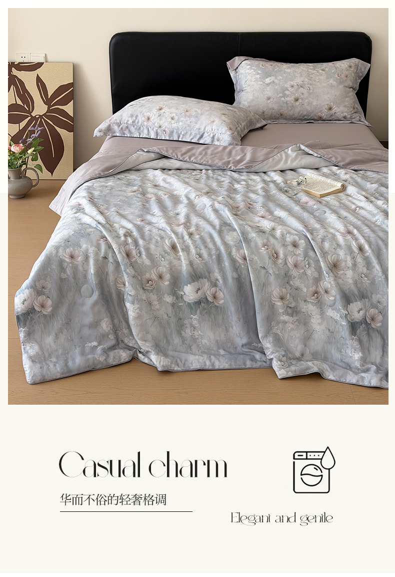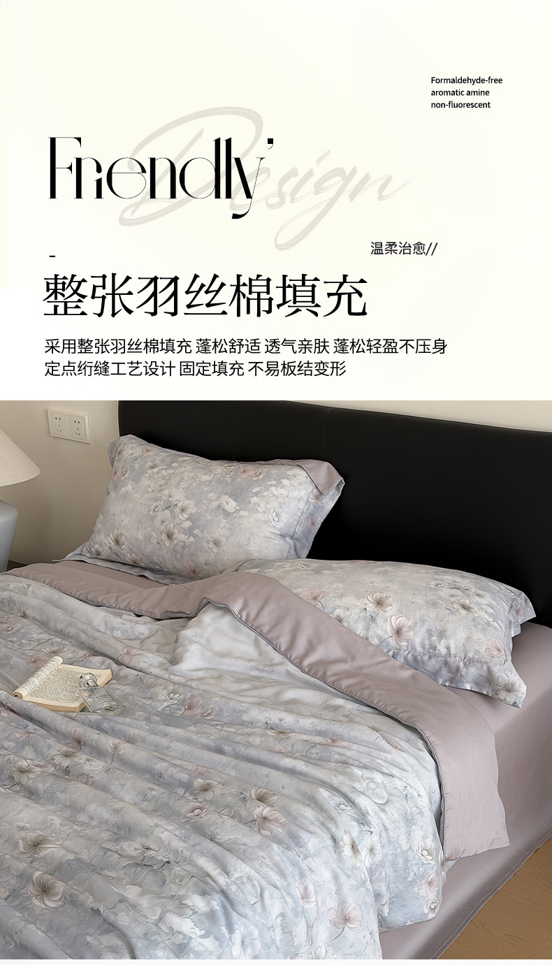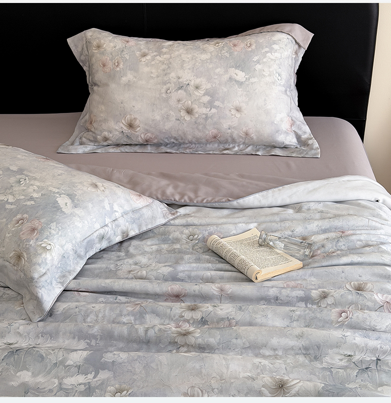当前位置: 91家纺网 > 商品网购 > 床品套件 > 四件套 > 夏被四件套 > 优彩 2026春夏新款50天丝夏被莱赛尔纤维夏被四件套天丝夏被单夏被单床笠单床单(控价单夏被不低于150) 云半-蓝灰
