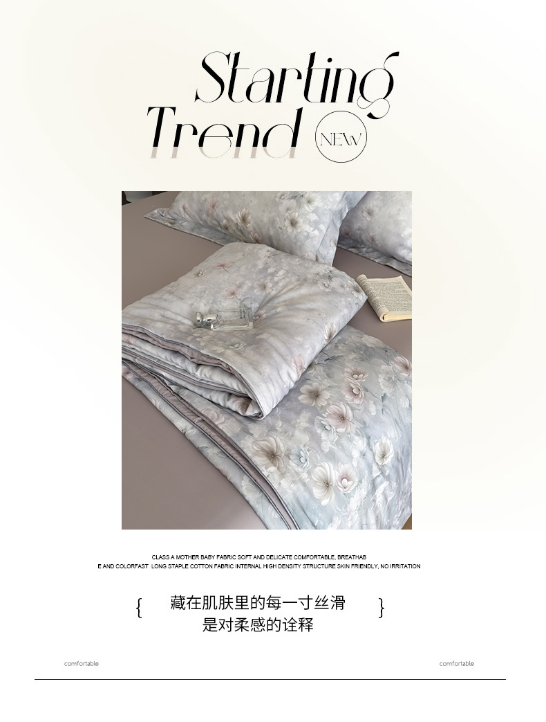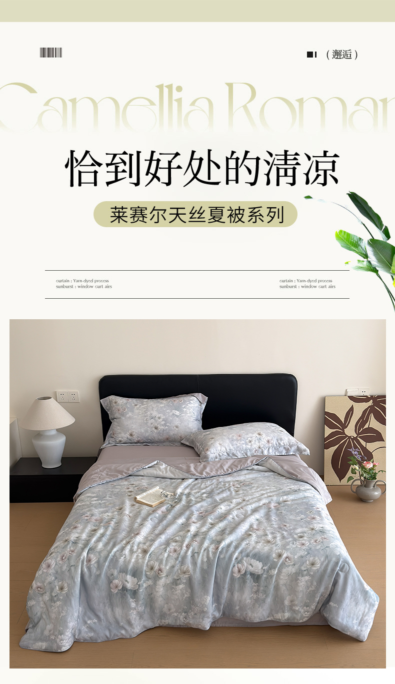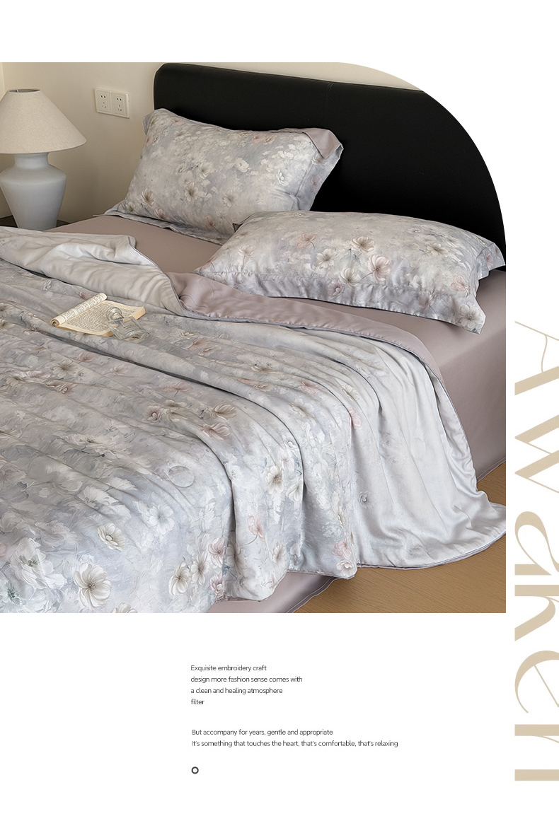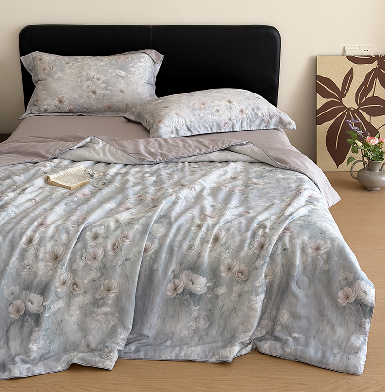 当前位置: 91家纺网 > 商品网购 > 床品套件 > 四件套 > 夏被四件套 > 优彩 2026春夏新款50天丝夏被莱赛尔纤维夏被四件套天丝夏被单夏被单床笠单床单(控价单夏被不低于150) 云半-蓝灰