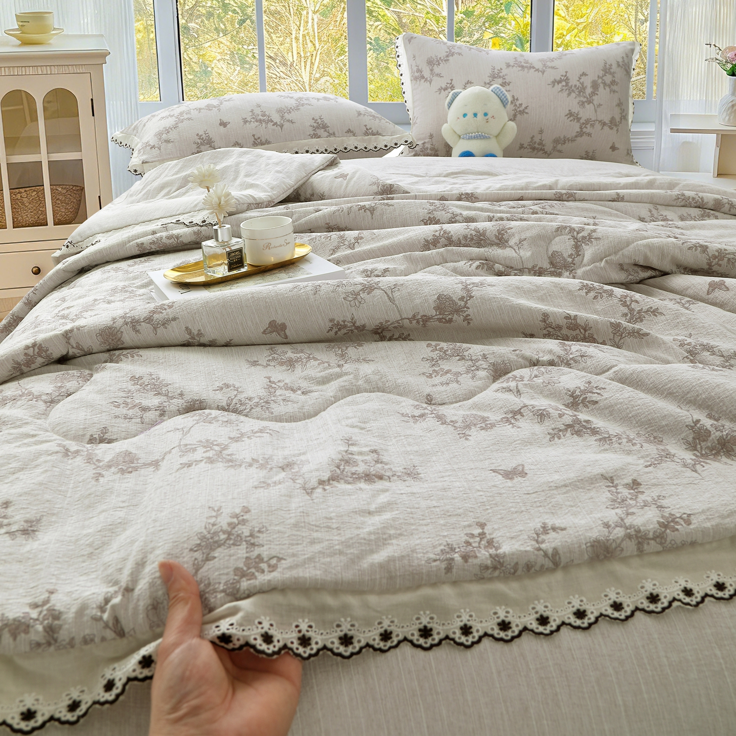 (总)恋之语 2026新款爆款花边色织水洗棉夏被夏凉被空调被四件套,波点奶汪,草莓,草莓气泡,草莓甜酒,春日花蔓,粉色领结,粉雾小花,灰调条纹,灰枝漫舞,灰枝疏影,墨蝶轻舞,浅蓝萌宠,浅蓝旺旺,浅棕蝶舞,浅棕汪汪,樱桃,樱桃-蓝,紫雾繁花