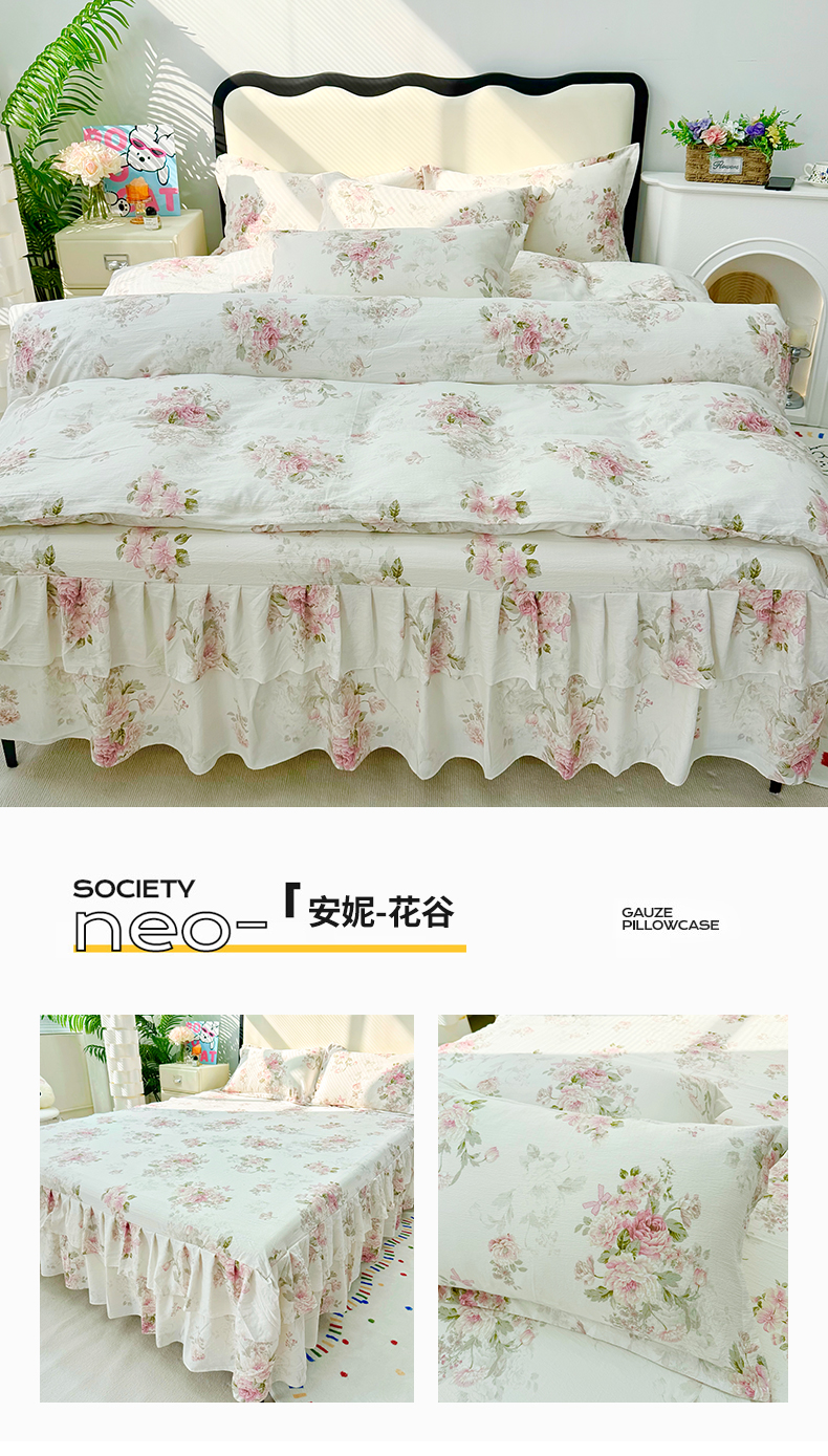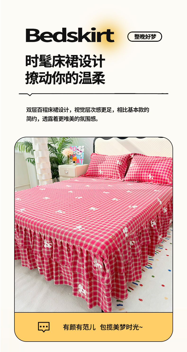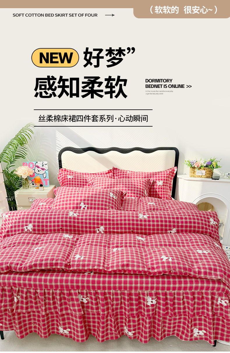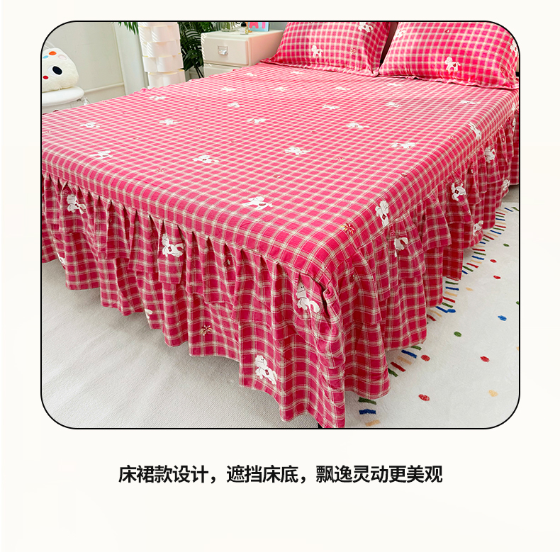 (总)九诺家纺 2026春夏新款丝柔棉皱皱纱床裙四件套双花边工艺床裙,浪漫心动,一见倾心,海岛青春,快乐伙伴,南笙假日,欧若拉,少女情结,圣代甜喵-粉,安妮-豹纹KT,安妮-草莓女孩,安妮-春意安然,安妮-花谷,安妮-花语时光,安妮-马上有福,安妮-喵喵物语,安妮-暖心小狗,安妮-蔷薇语,安妮-甜酷猫咪,安妮-星星兔,安妮-幸福飞马,安妮-紫薇花