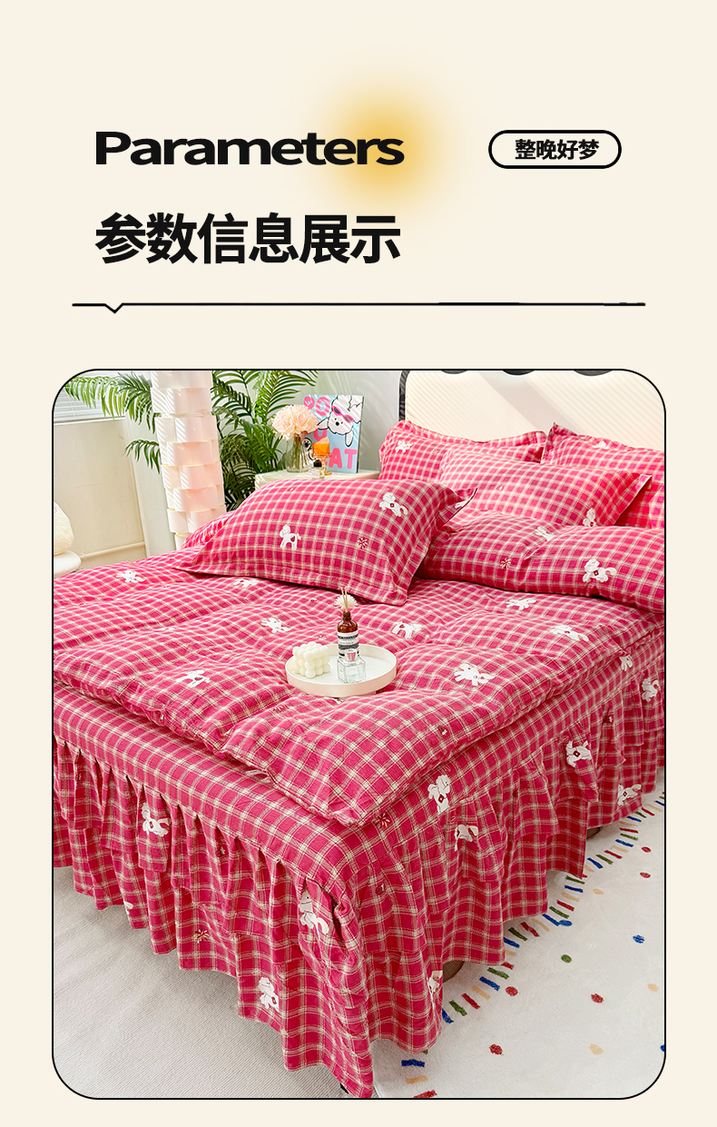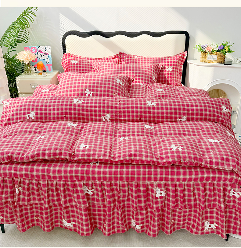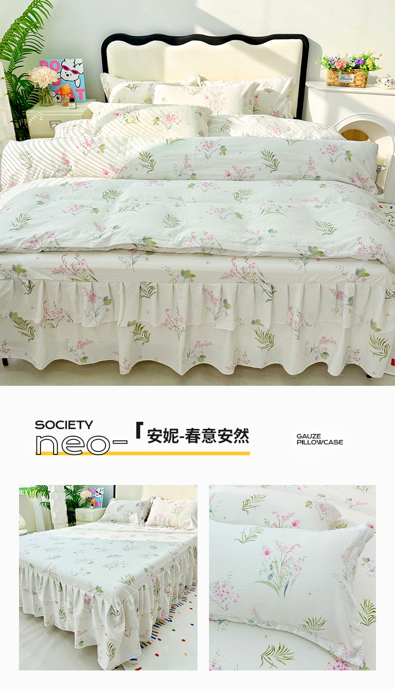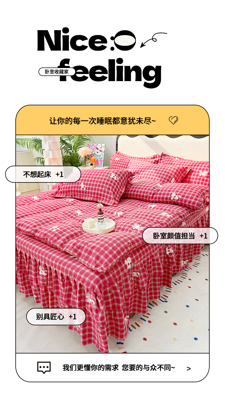 (总)九诺家纺 2026春夏新款丝柔棉皱皱纱床裙四件套双花边工艺床裙,浪漫心动,一见倾心,海岛青春,快乐伙伴,南笙假日,欧若拉,少女情结,圣代甜喵-粉,安妮-豹纹KT,安妮-草莓女孩,安妮-春意安然,安妮-花谷,安妮-花语时光,安妮-马上有福,安妮-喵喵物语,安妮-暖心小狗,安妮-蔷薇语,安妮-甜酷猫咪,安妮-星星兔,安妮-幸福飞马,安妮-紫薇花