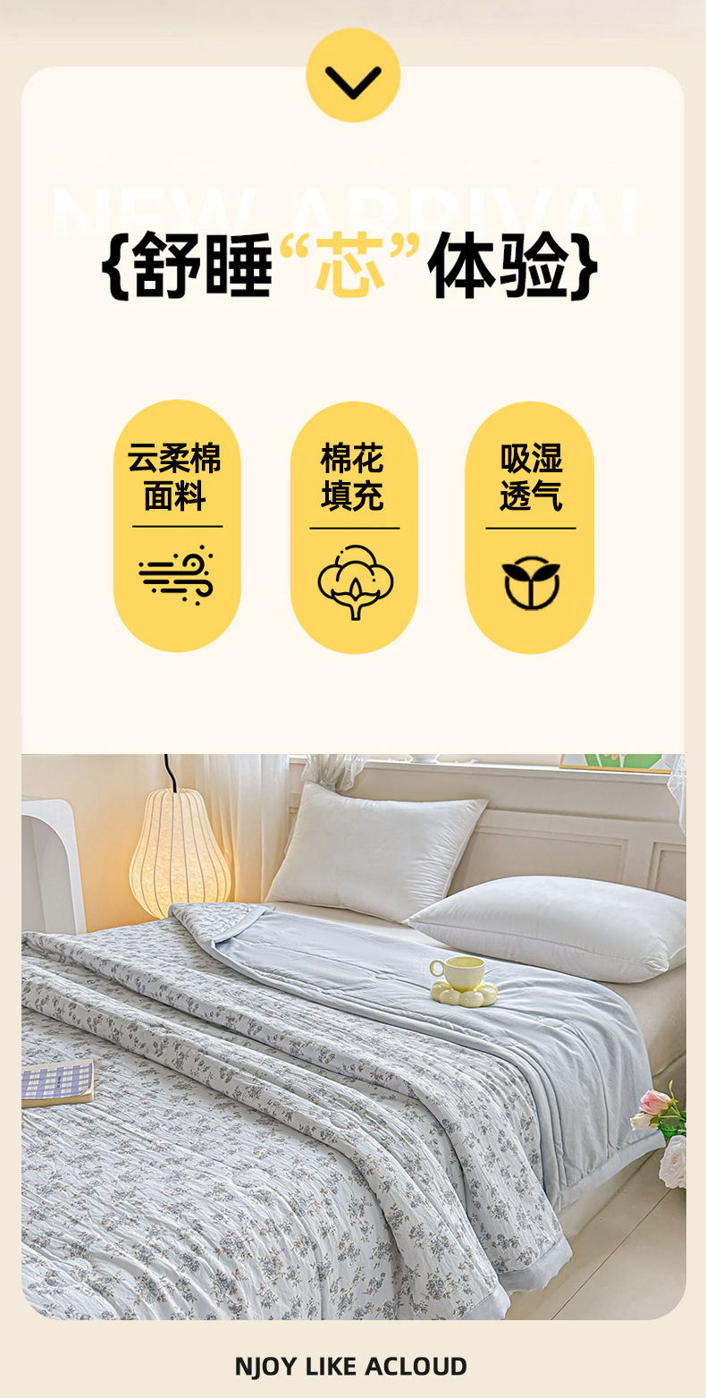 • 91家纺网 家纺一手货源 找家纺 好欣怡家纺 2026新款110克云柔棉被子50%新疆棉花夏被冬被被芯直播首选(含检测报告) 花町-夏被
