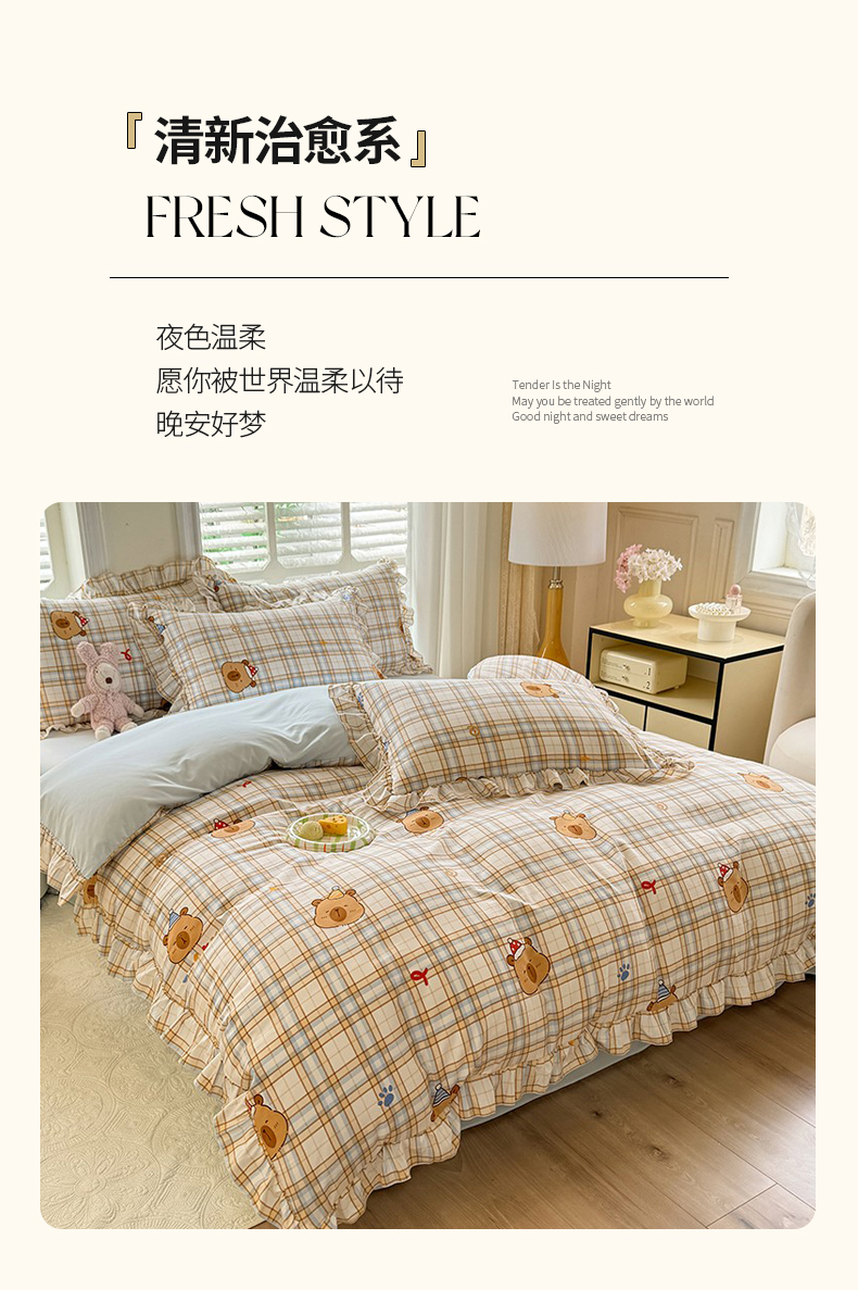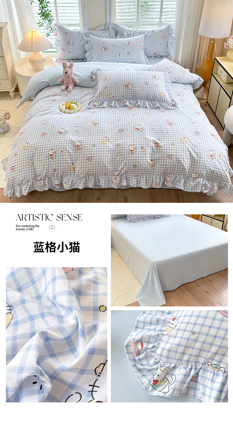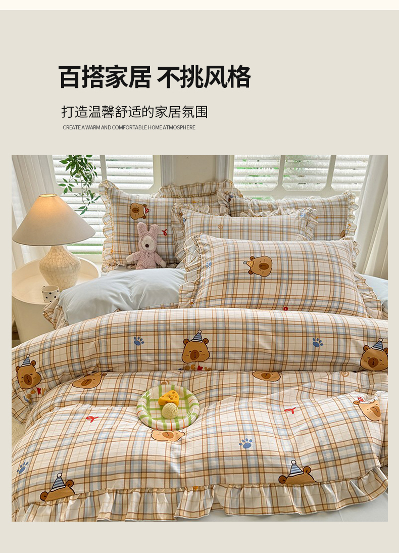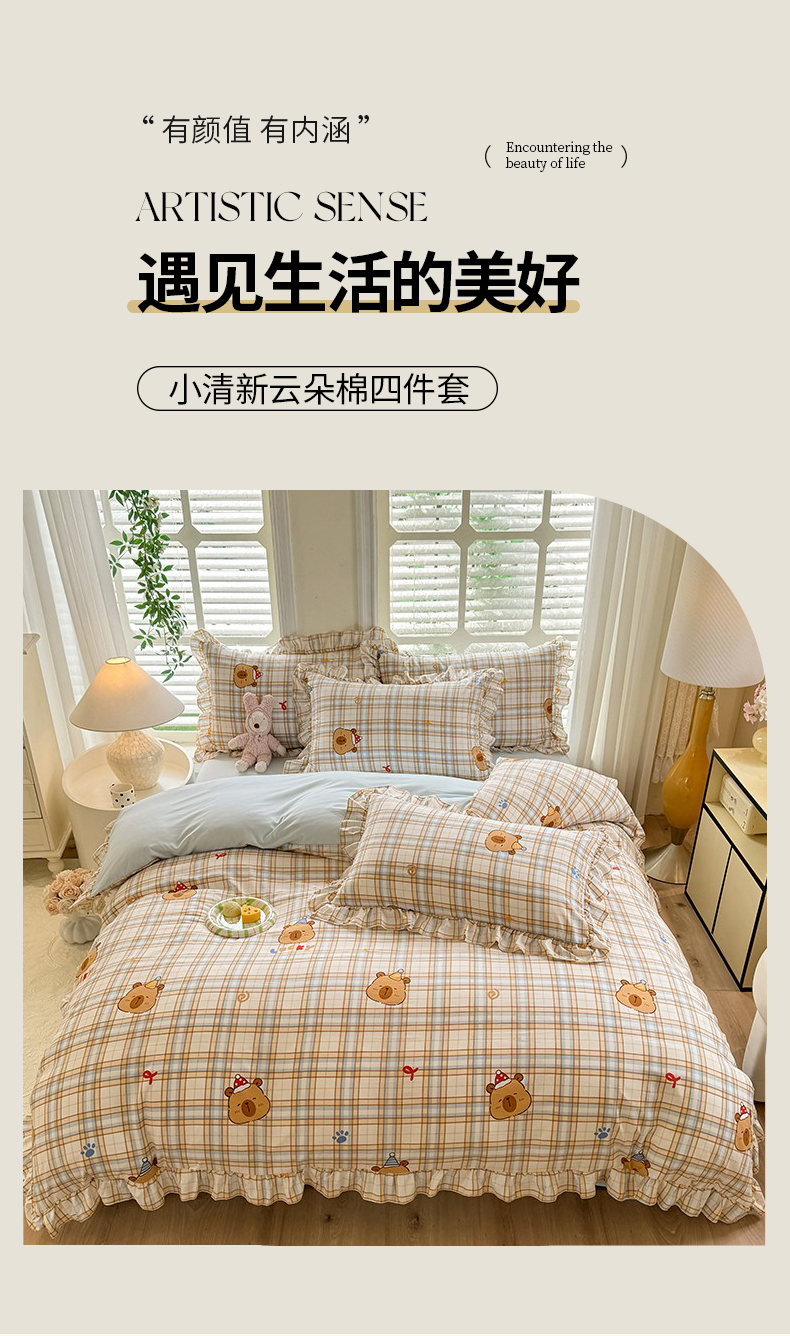 当前位置: 91家纺网 > 商品网购 > 床品套件 > 四件套 > 水洗棉四件套 > 经年 2026新款韩版花边水洗云朵棉四件套 卡皮吧啦