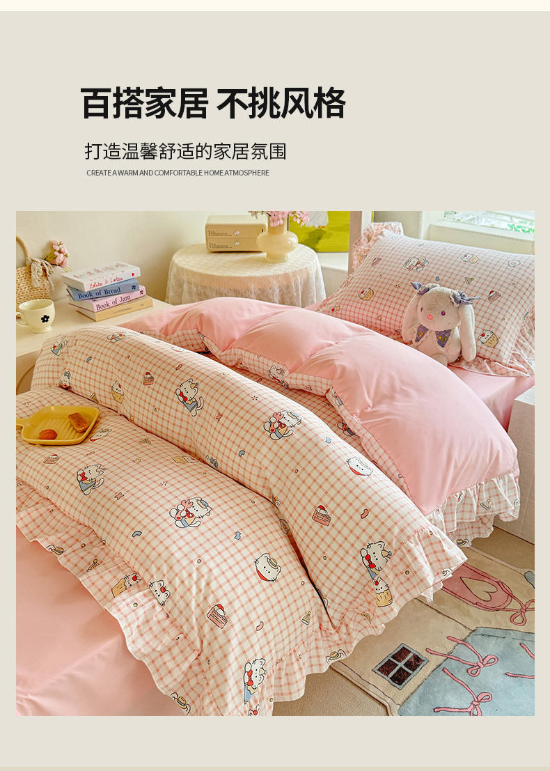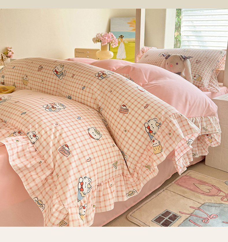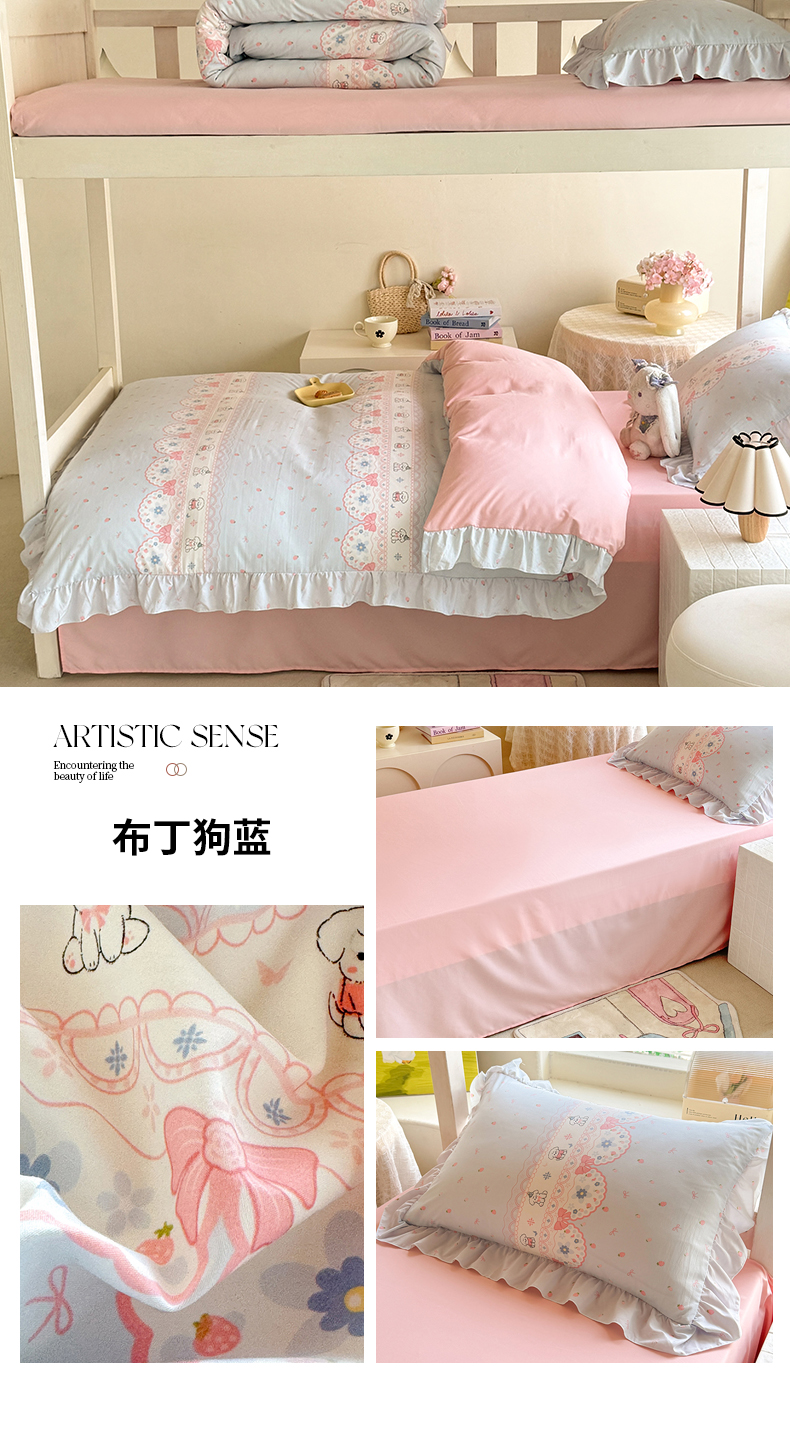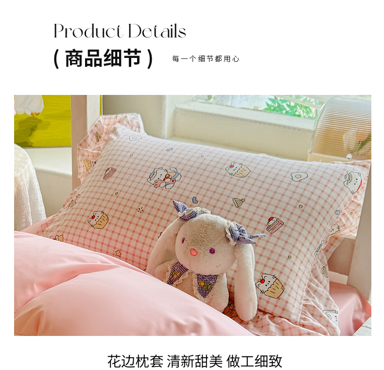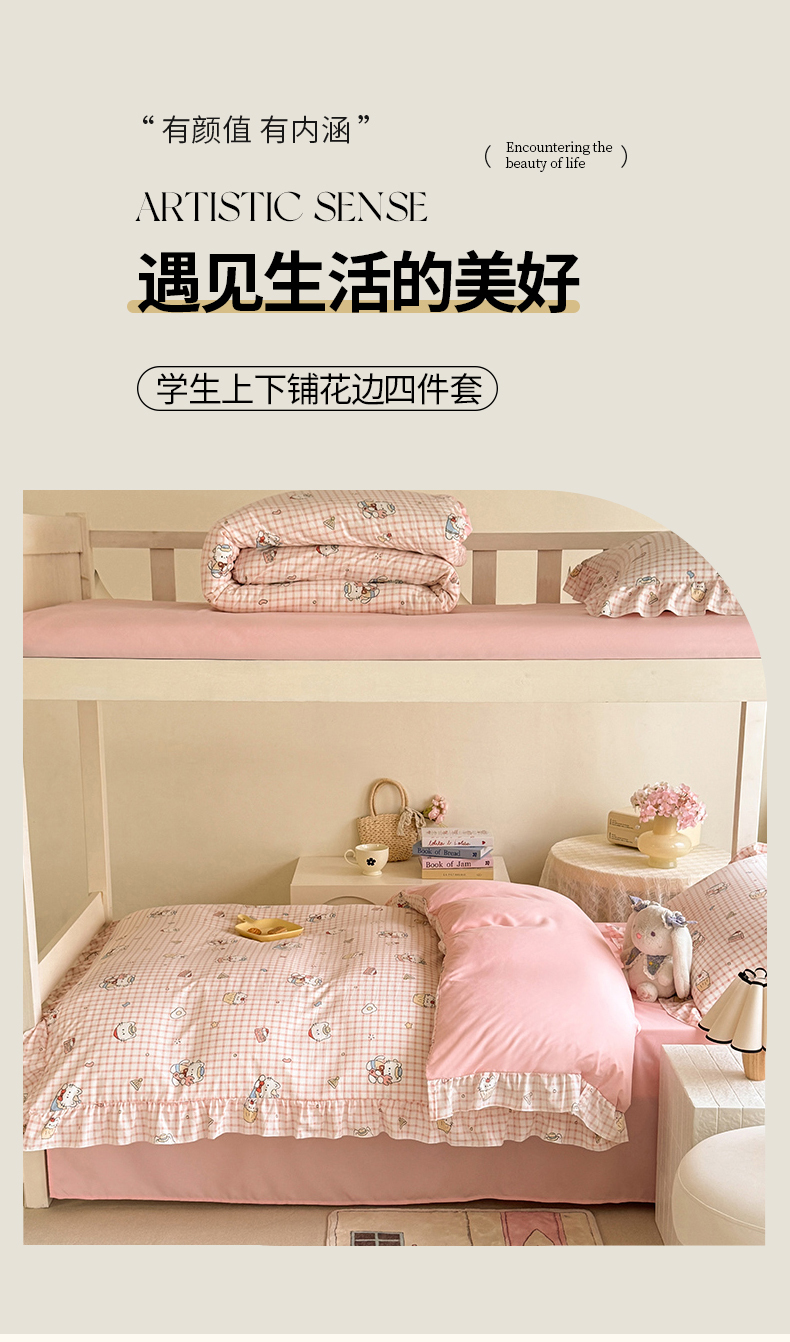 当前位置: 91家纺网 > 商品网购 > 床品套件 > 四件套 > 水洗棉四件套 > 经年 2026新款学生季上下铺韩版花边水洗云朵棉学生宿舍三件套四件套 粉格小猫