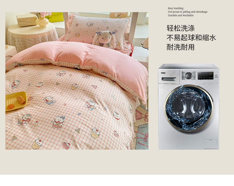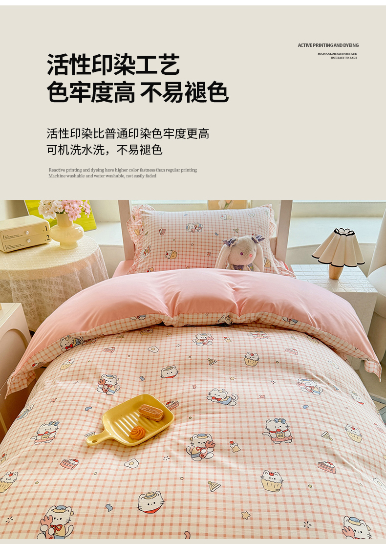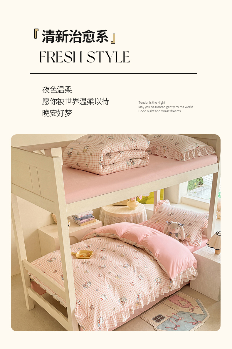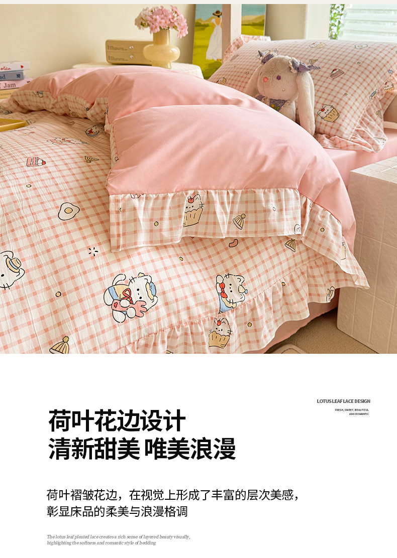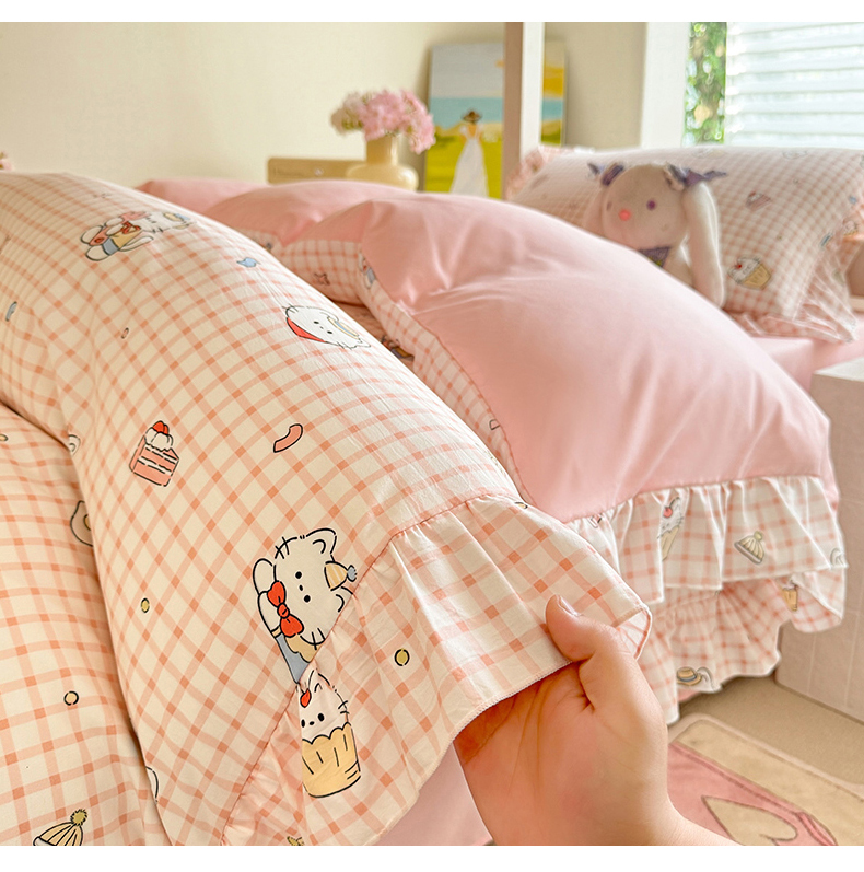 当前位置: 91家纺网 > 商品网购 > 床品套件 > 四件套 > 水洗棉四件套 > 经年 2026新款学生季上下铺韩版花边水洗云朵棉学生宿舍三件套四件套 粉格小猫
