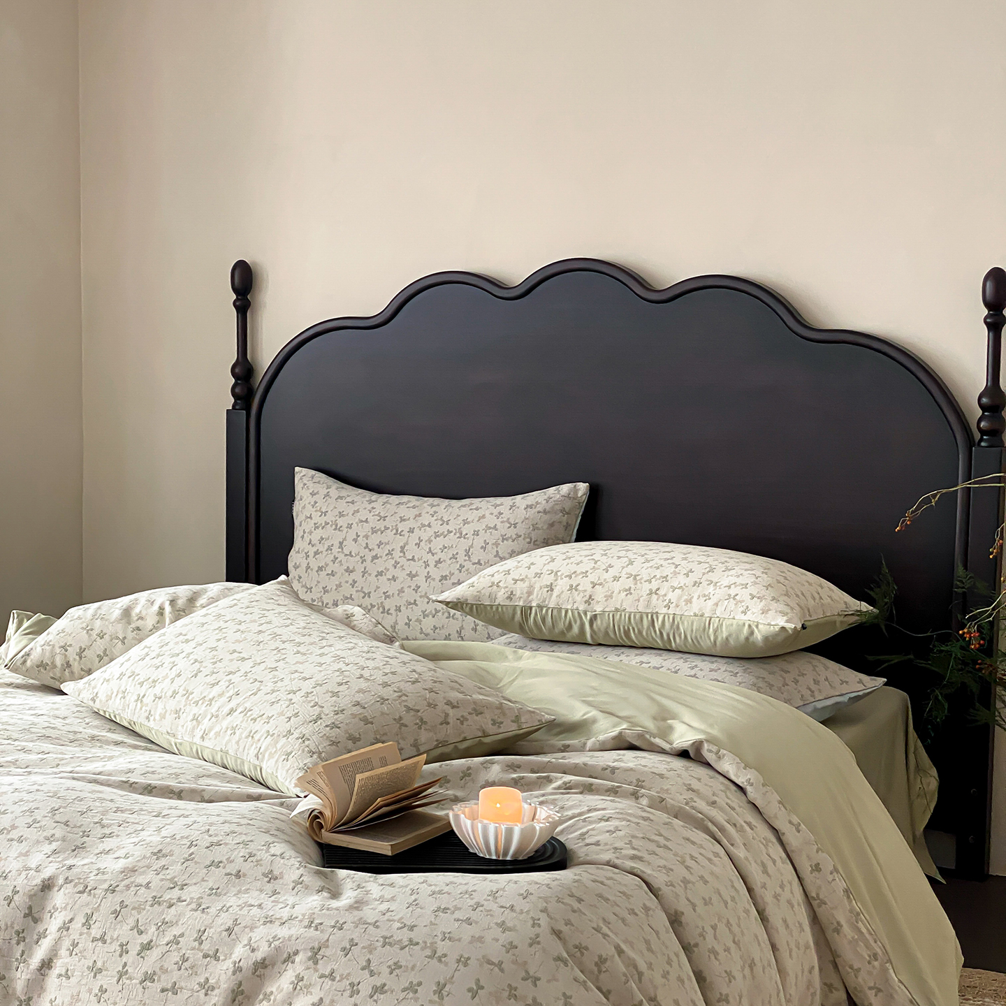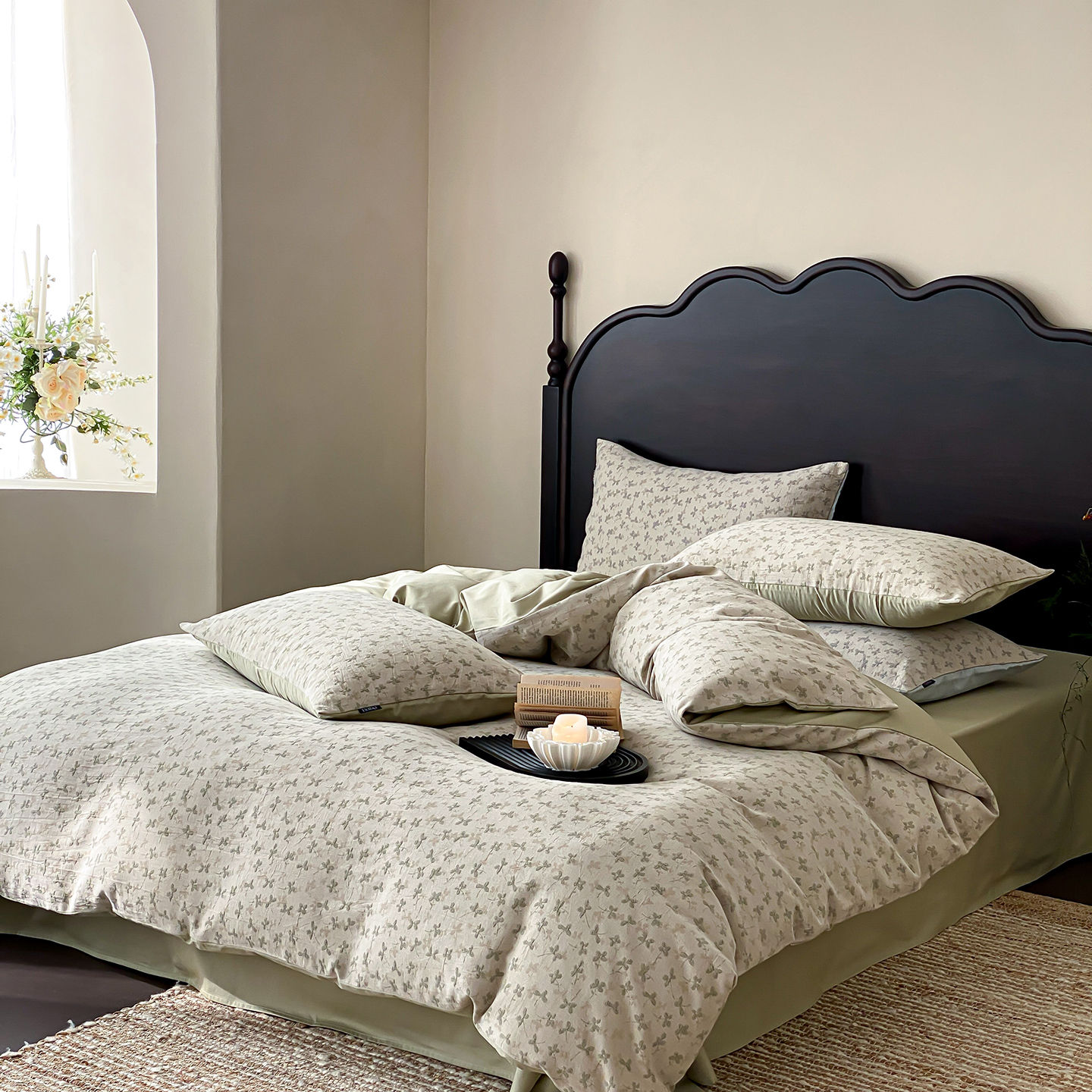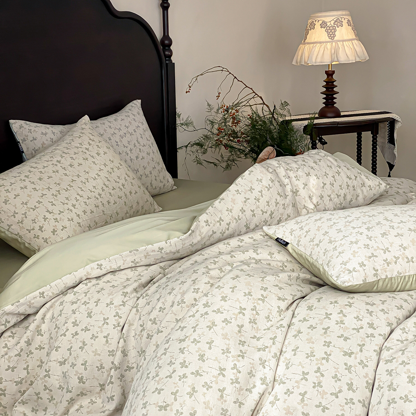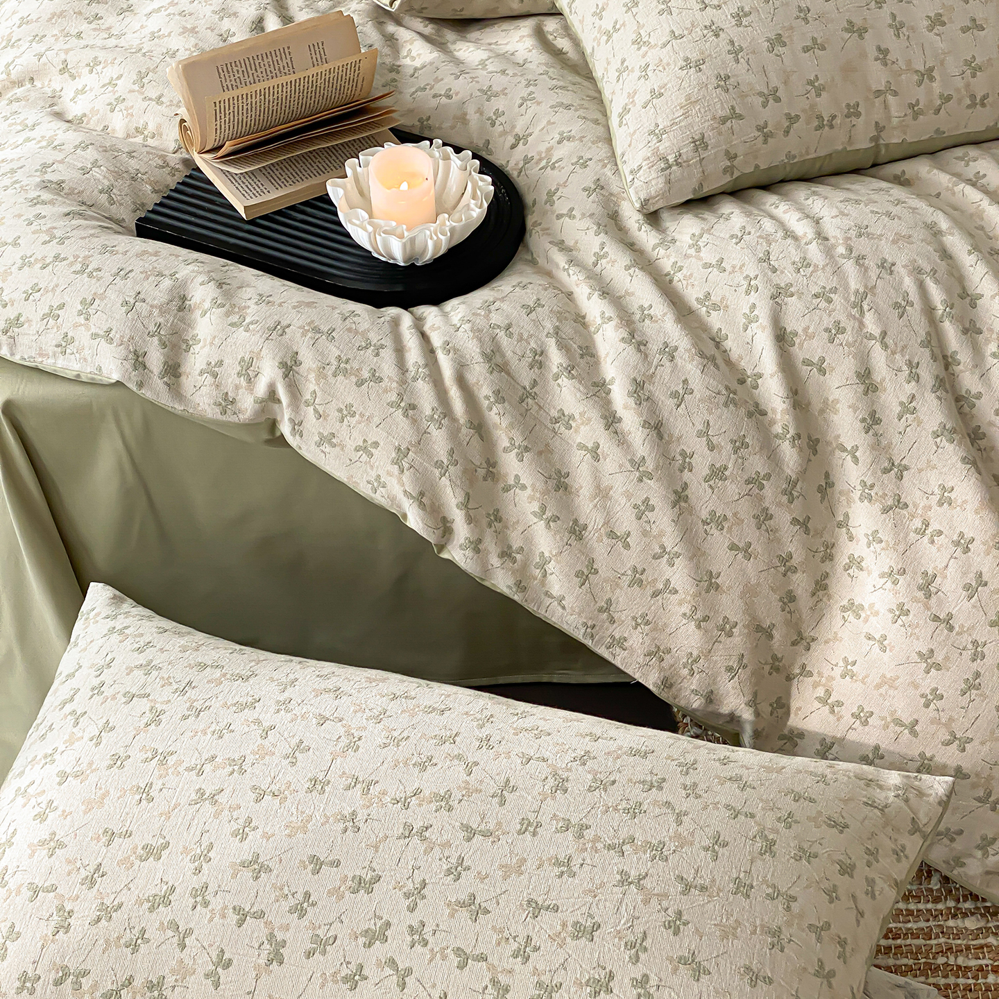 赫帛 2026新款60S全棉色织提花水洗棉四件套-四叶草 四叶草-浅绿