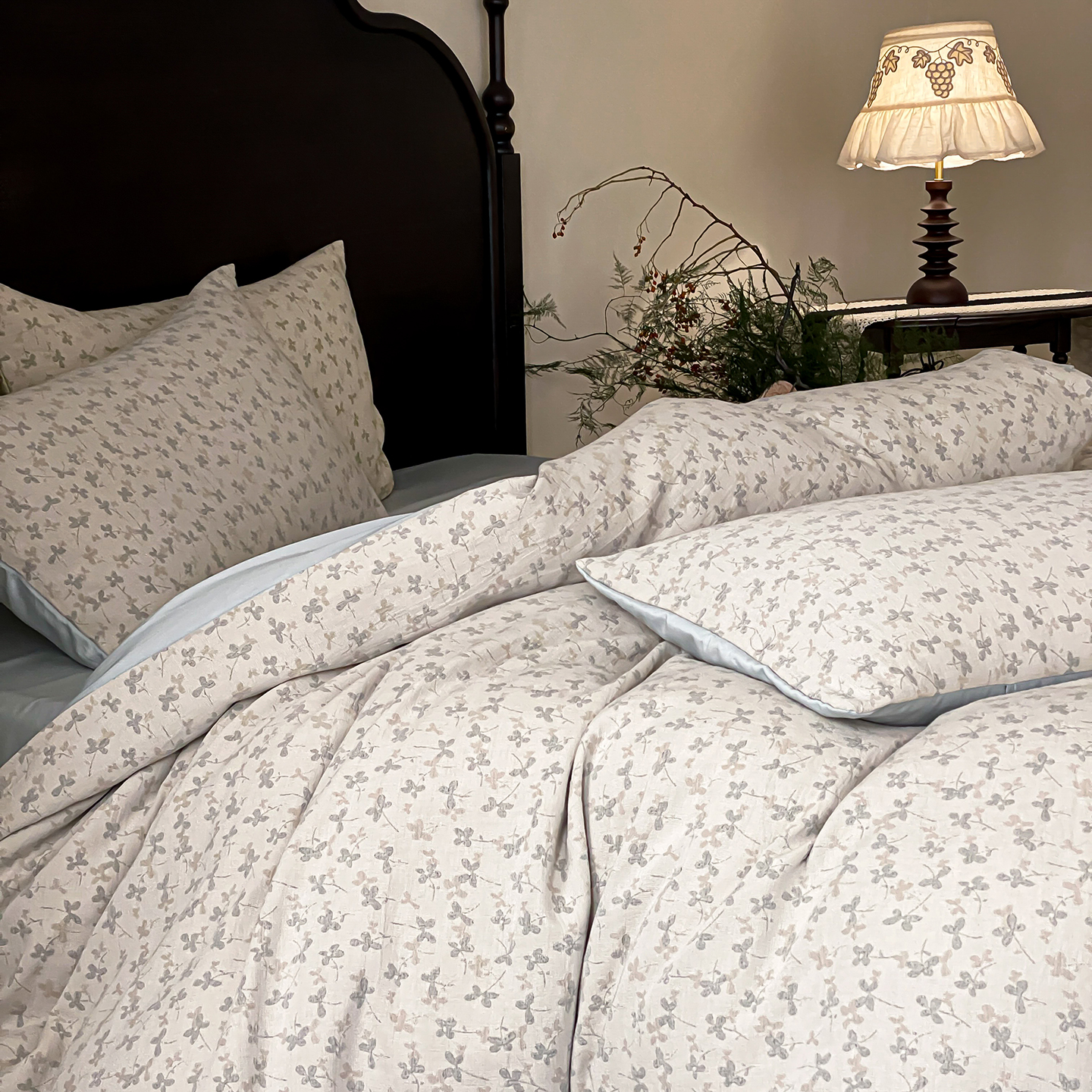 (总)赫帛 2026新款60S全棉色织提花水洗棉四件套-四叶草,四叶草-湖蓝,四叶草-浅绿