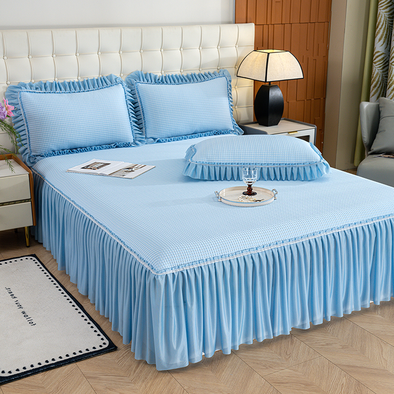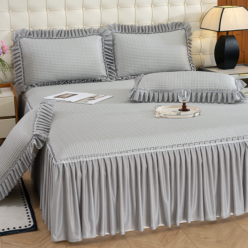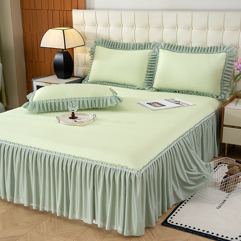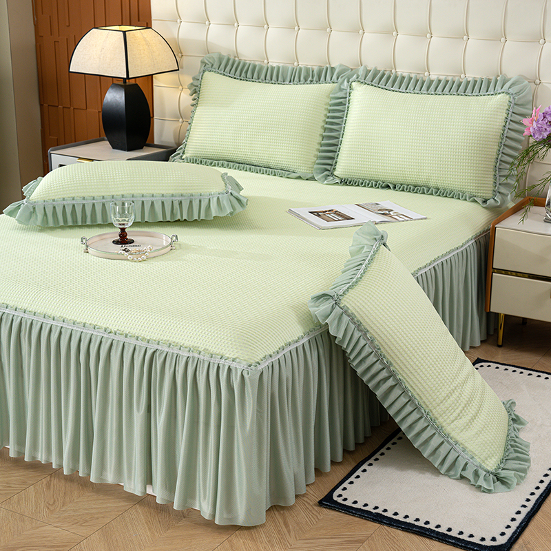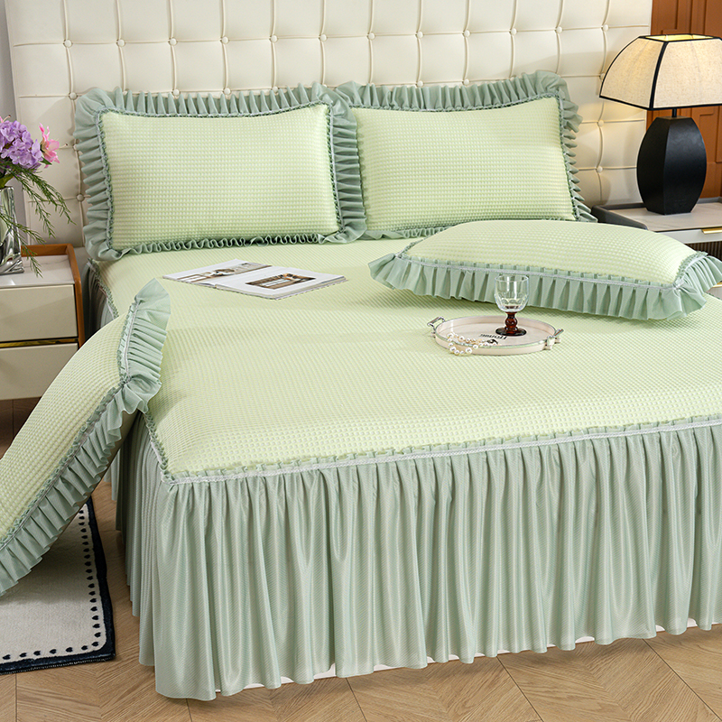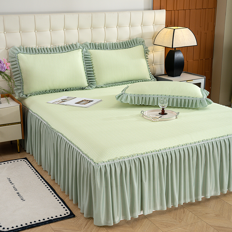 (总)睡美美家纺 2026新款A类3D按摩豆豆席床裙款凉席三件套,豆沙,果绿,米白,天蓝,中灰